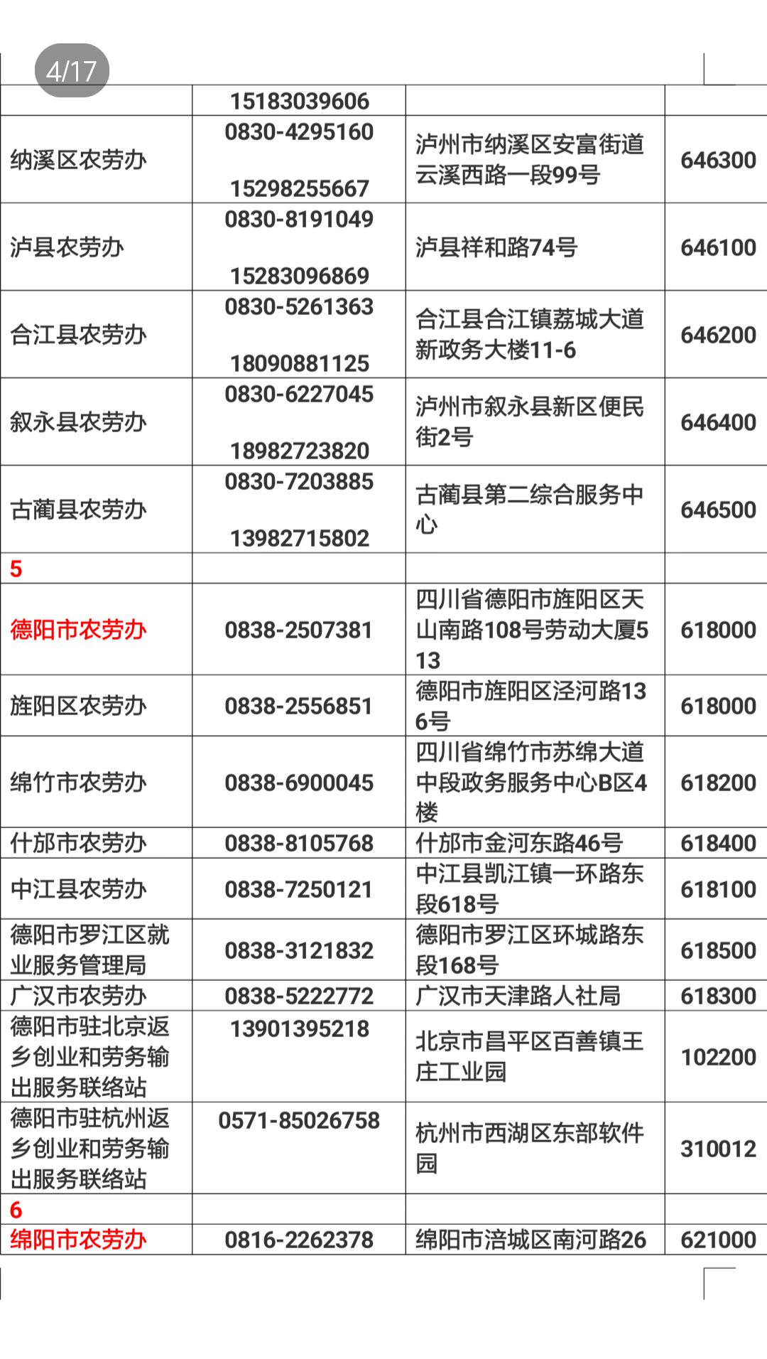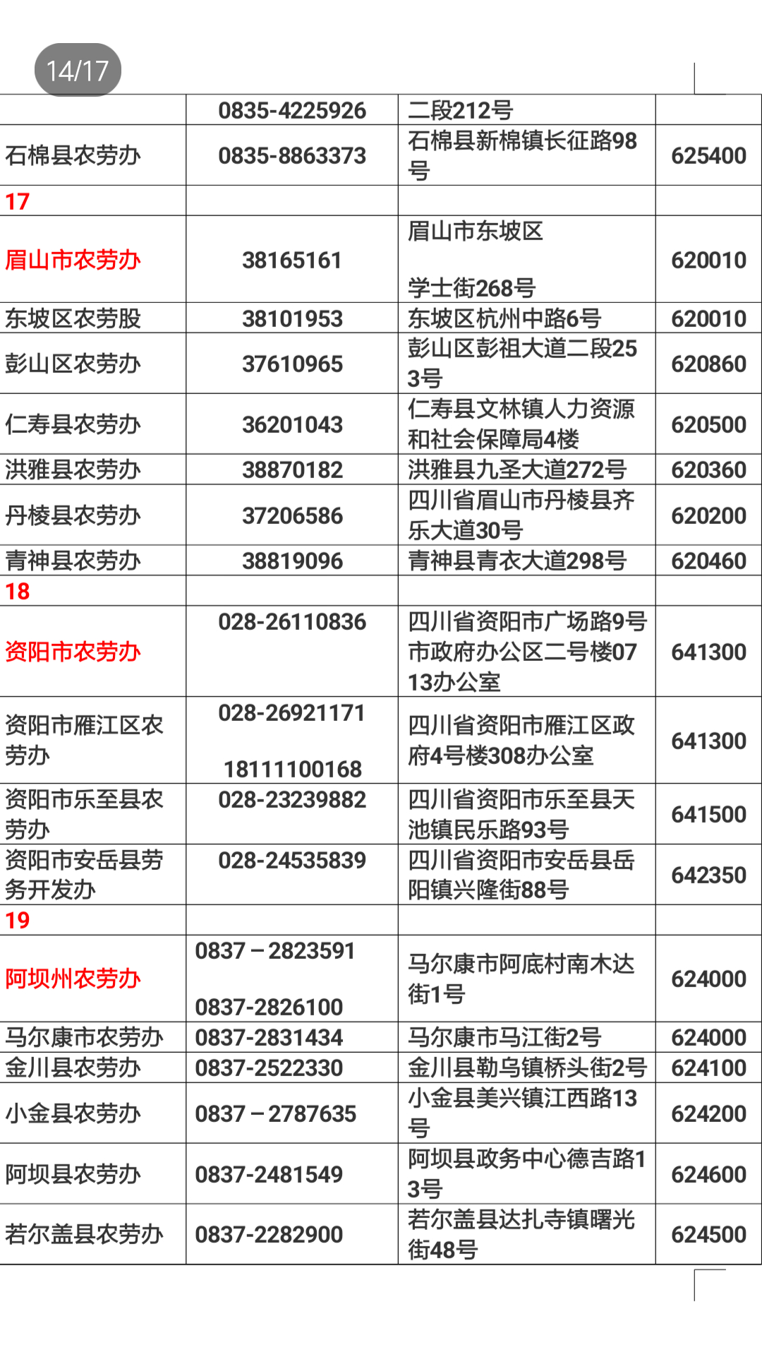 近日,四川省人社厅、省农劳办向社会公布了全省各地以及省政府驻外办事处农民工服务电话,农民工朋友在外务工遇到困难想求助,或是想返乡创业咨询政策,或是想提升技能学习,可以打这些电话咨询。