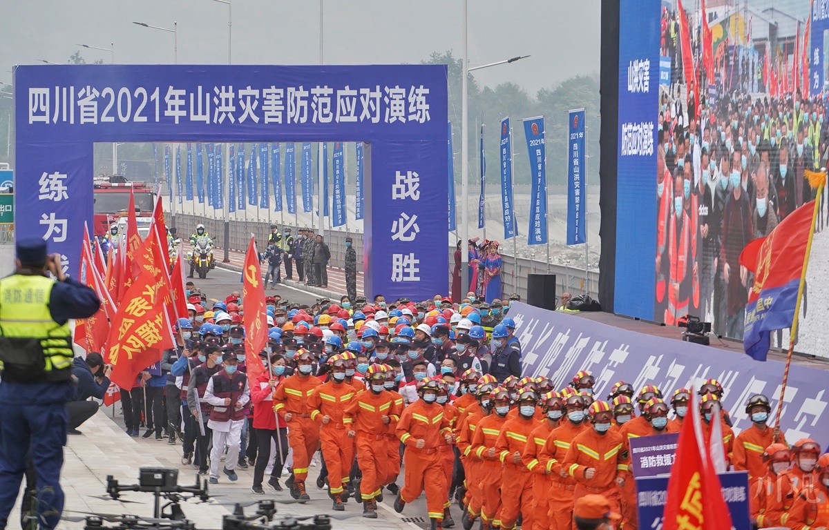 4月23日,由四川省防汛抗旱指挥部主办,阿坝州防汛抗旱指挥部,中共汶川县委、县人民政府承办的四川省2021年山洪灾害防范应对演练在汶川县绵虒镇举行。