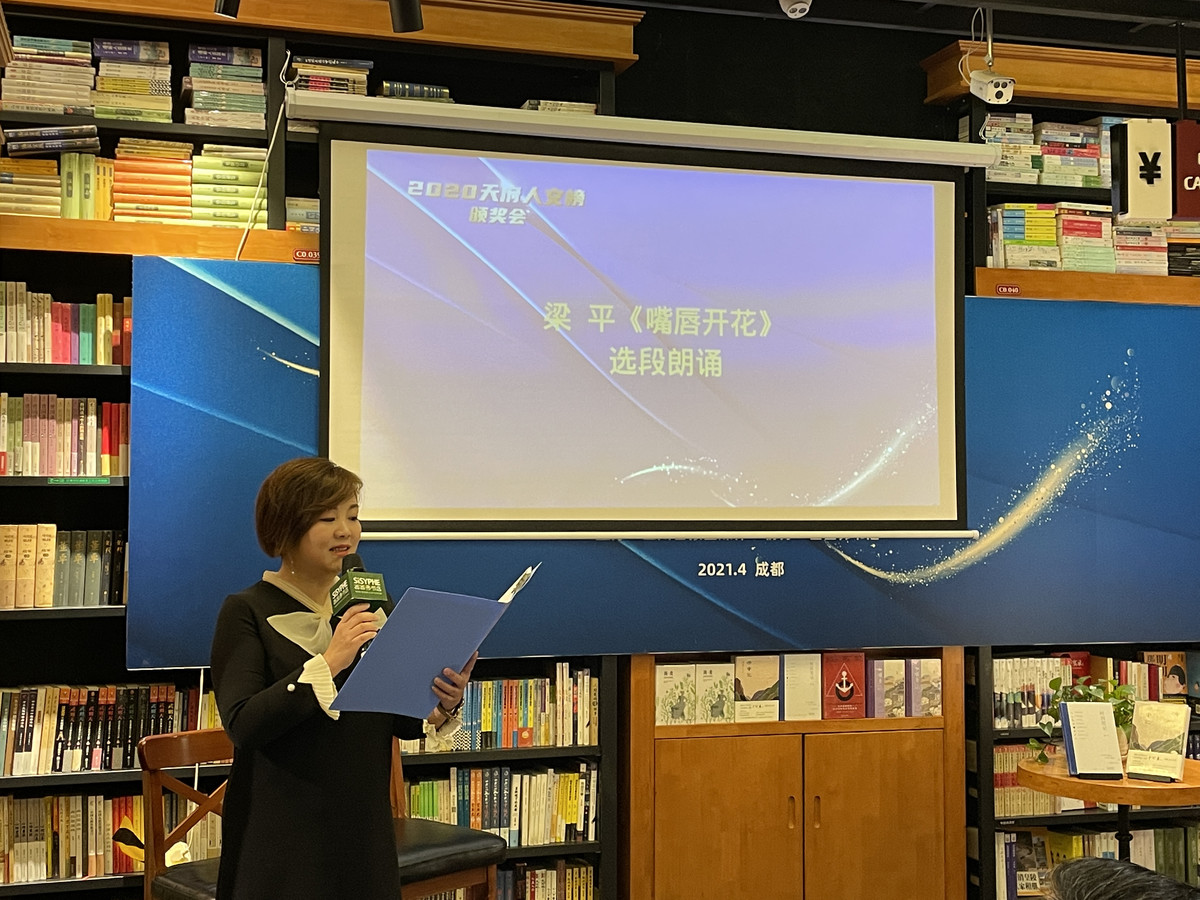 “我就是要和病魔战斗到底,正像当年我作地下革命斗争不畏死一样……”“云中村出现了。离开了三年多时间的云中村出现在眼前。残墙连着残墙……”“三个邮戳发往南方,南方海蓝得诗意。波音从天而降,寄存我忘了保险的邮件……”“通过战疫文艺特有的感染力、影响力,做到知民情、解民忧、纾民怨、暖民心,凝聚起全民族众志成城抗疫情的磅礴力量,书写了中国人民与重大传染性疾病作斗争的伟大篇章。”4月23日上午,伴随着朗诵家们深情的诵读,“2020天府人文榜颁奖会暨名家阅读分享会”在经典文学作品中散发阵阵书香。