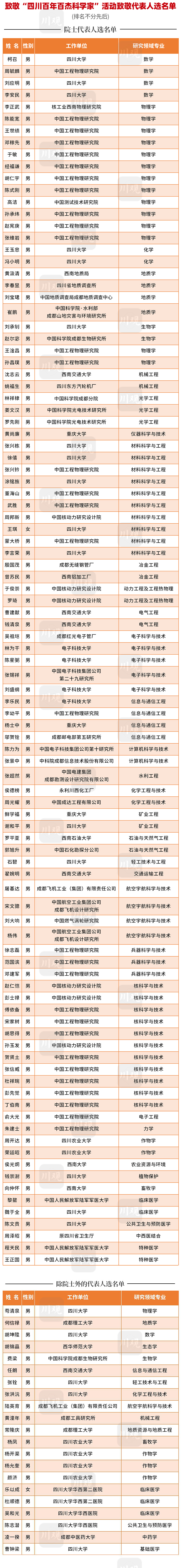 这份名单,也是一部四川科技的发展史,折射出我省科技发展的过去、现在和未来。