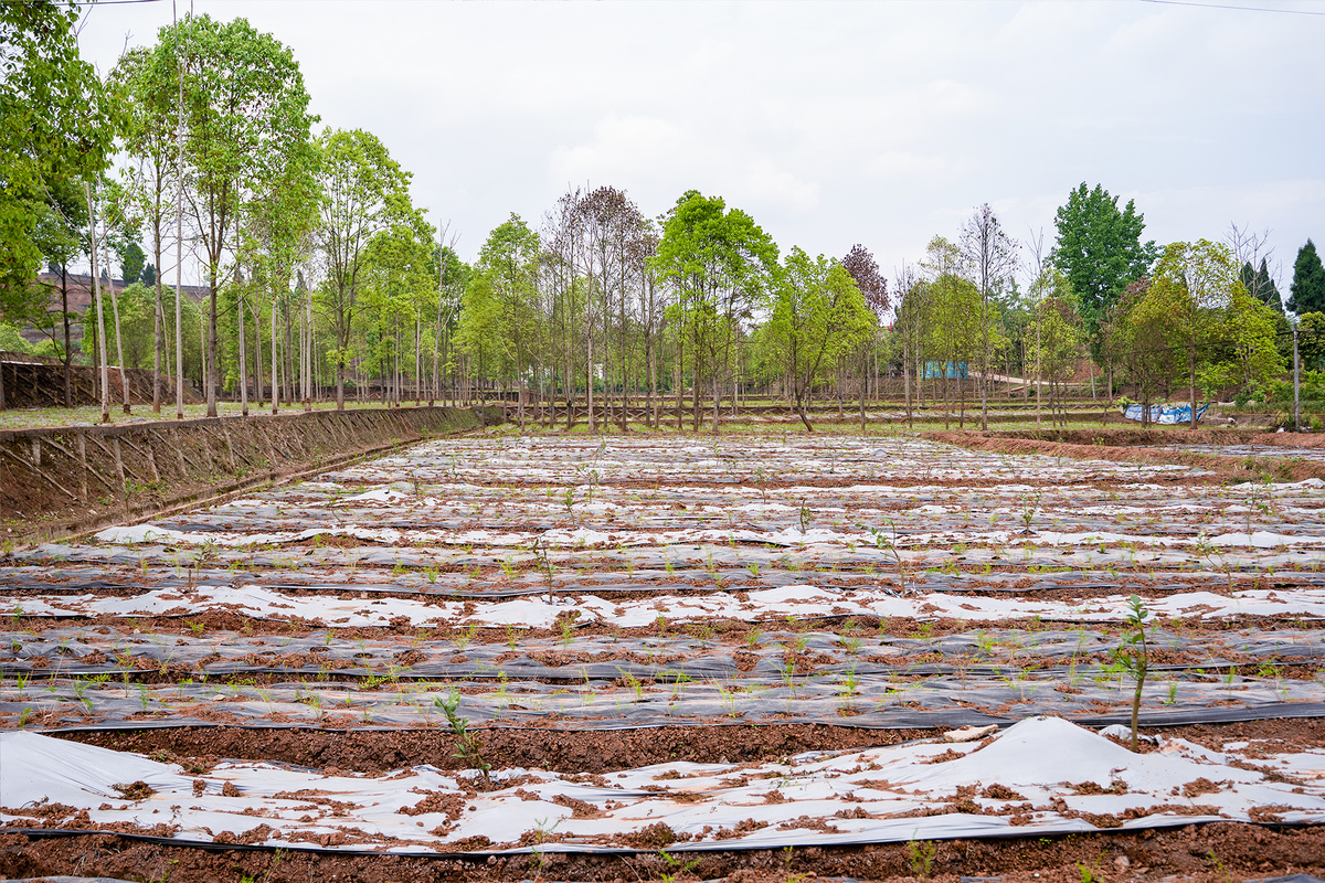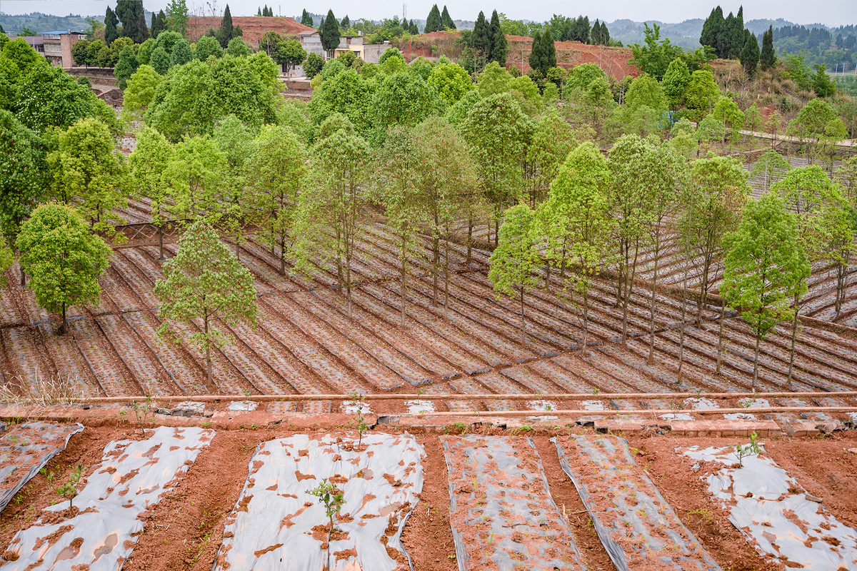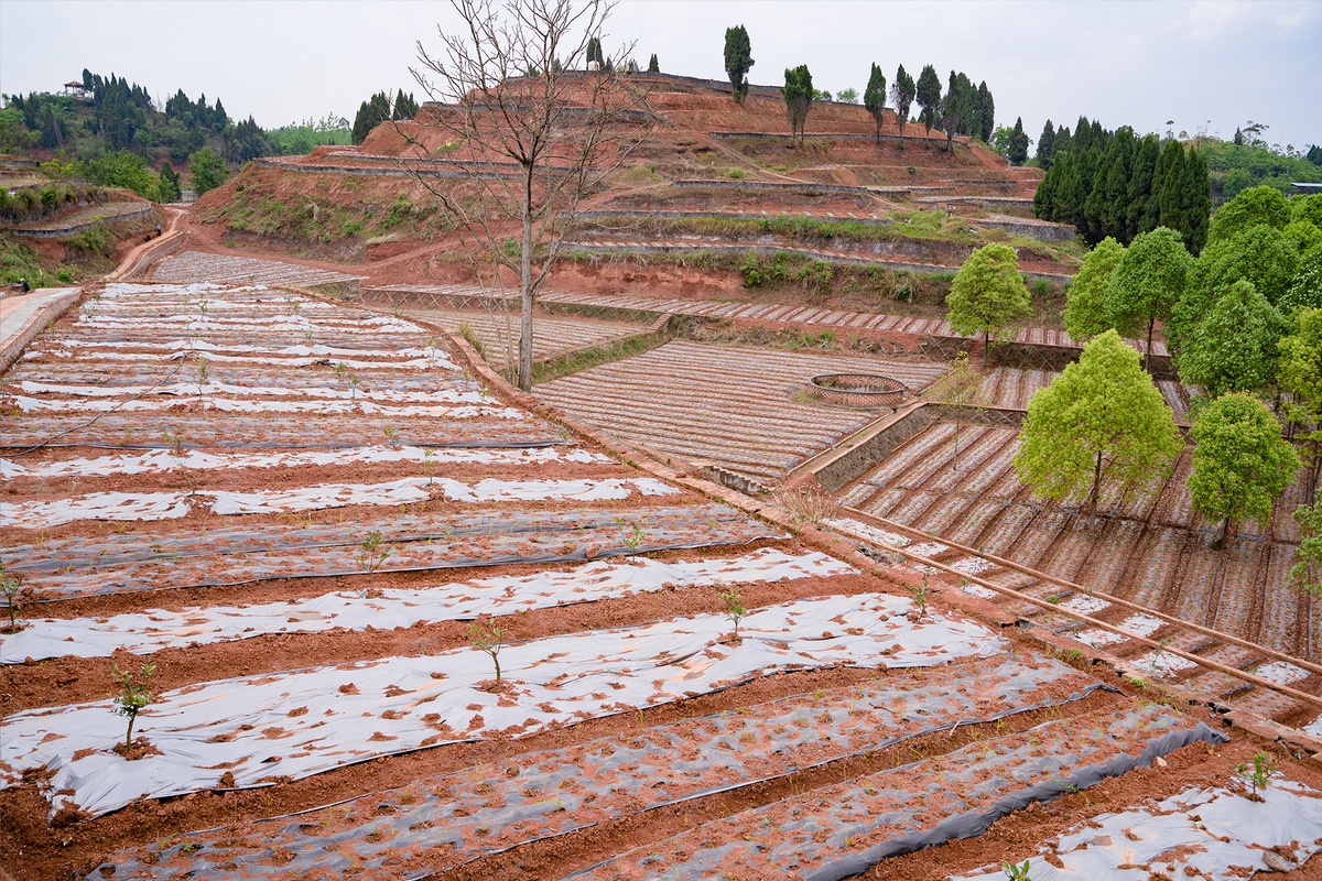 4月24日,位于内江市东兴区长江现代农业园区的中药材产业科技示范园,火花村村民杨长付正在拓宽内部便道。园区内浅丘纵横,曾经的撂荒地都已经栽种上了中药材,一株株绿苗从黑色的覆膜中钻了出来。