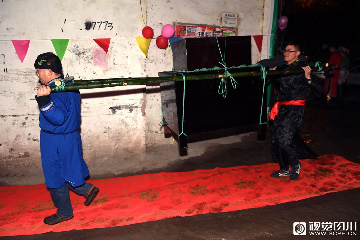 26日凌晨,新娘在长辈的牵引下出发到新郎家。