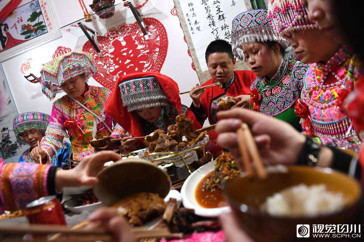 2月26日晚,宜宾市兴文县苗族小伙子杨宇桥和姑娘韩玉洁送走前来参加婚礼的亲朋好友,这场婚礼从24日就开始,整整持续了三天才算完美收场。