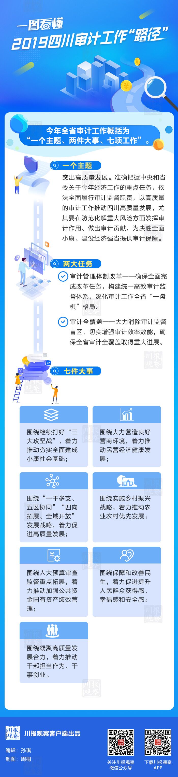 全省审计工作的总体安排是:以习近平新时代中国特色社会主义思想为指导,全面贯彻党的十九大、十九届二中、三中全会和中央审计委员会第一次会议、省委审计委员会第一次会议精神,深入学习贯彻习近平总书记对四川工作和审计工作系列重要指示精神,认真落实省委十一届三次、四次全会和经济工作会议部署,大力深化审计改革,保障审计机关依法独立行使审计监督权,不断拓展审计监督广度和深度,着力构建集中统一、全面覆盖、权威高效的审计监督体系,贯通审计监督与党内监督、国家机关监督、民主监督、司法监督、群众监督、舆论监督,更好发挥审计促进经济高质量发展、促进全面深化改革、促进权力规范运行、促进反腐倡廉的职能作用,为治蜀兴川再上新台阶强化审计保障。