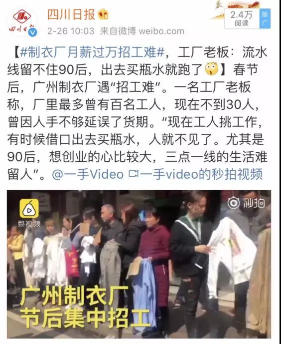 再一个就是青年人与制造业的问题。青年人宁愿在服务业拿2000块钱月薪,也不愿意到制造业的流水线上去挣4000块钱。