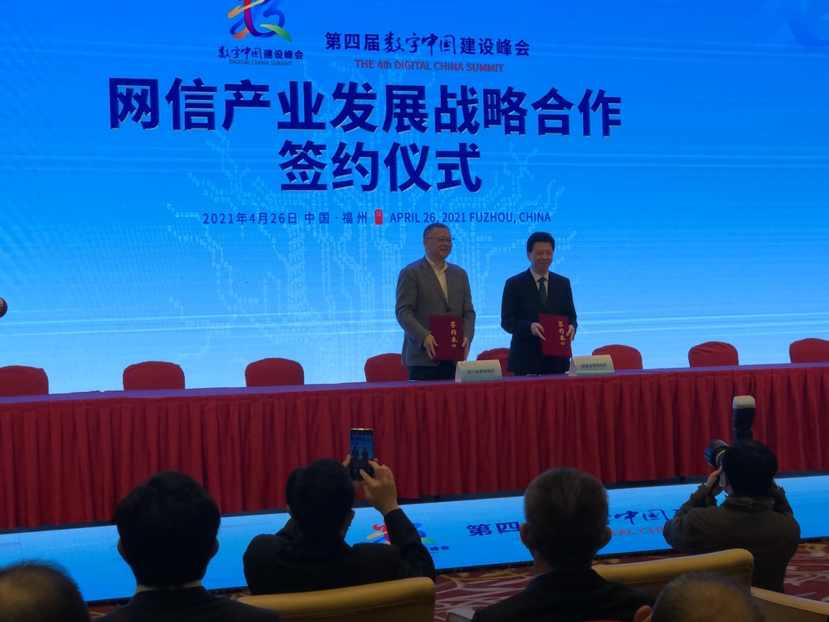 4月26日,在福建省福州市召开的第四届数字中国建设峰会举行网信产业发展战略签约仪式。四川省委网信办和福建省委网信办、福建广电网络集团和四川广电有线网络分别签署合作协议。