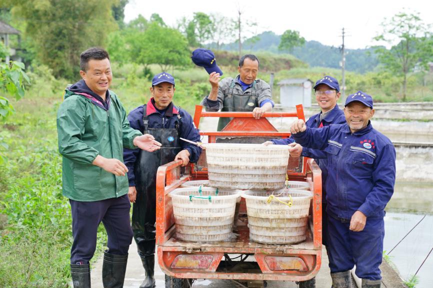 李晓川(左一)与村民运送泥鳅