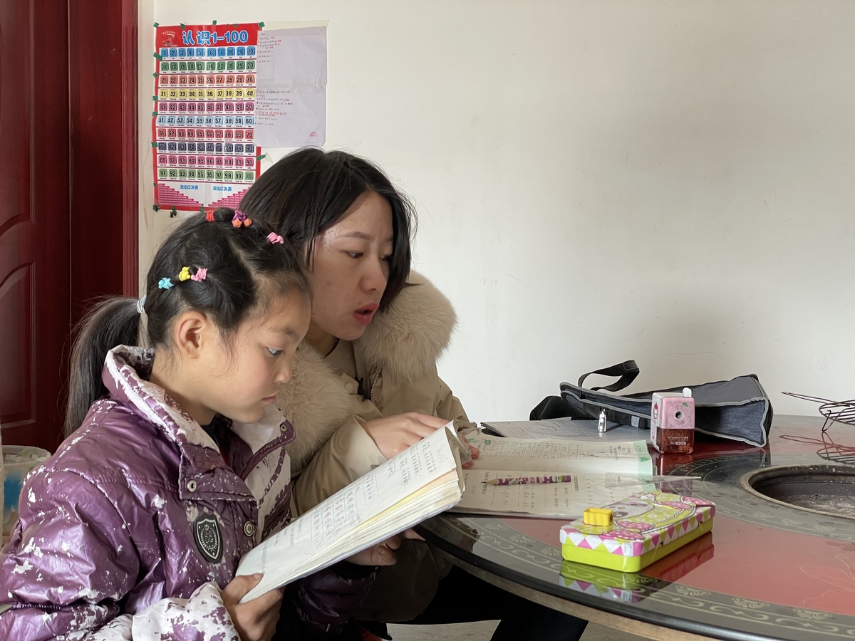 陈云梅给村里的小孩辅导功课。