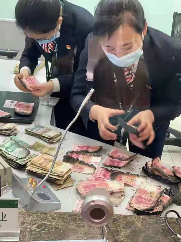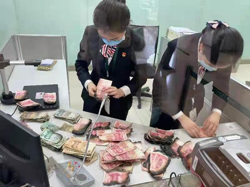 在了解具体情况后,人行新都支行马上帮助老人联系了附近的成都农商银行新都支行,并陪同老人一起到该行营业厅对这些“火烧钱”进行鉴定兑换。