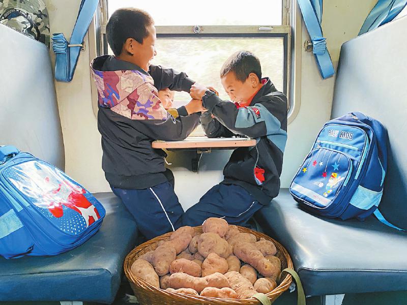 周末,列车上有不少乡村孩子,跟着父母坐车到城里卖自家农产品,再买些日用品回家。四川日报全媒体记者 唐子晴 摄
