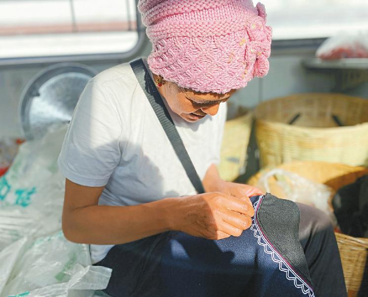 家住普雄的俄力阿支木安顿好行李,脱下外套,拿出针线,缝补衣服上脱线的绣花。四川日报全媒体记者 唐子晴 摄