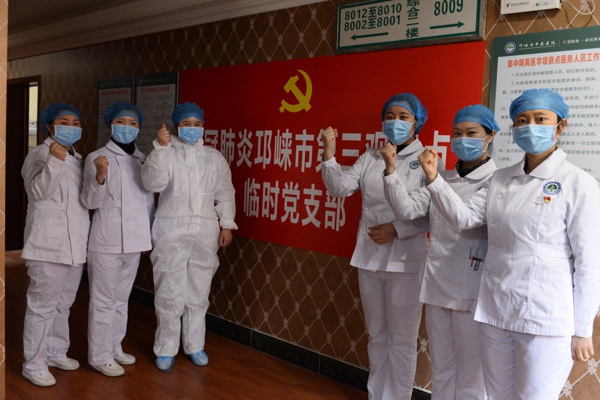 2020年2月,一个特殊的支部——新冠肺炎邛崃市第三观察点临时党支部成立了。程雪彬告诉记者,为确保观察点上的工作能更顺利地开展,医院党委选派了16名高学历、高职称、高年资医务人员参与其中,并成立“妈妈团队”照顾观察点的幼儿,共计完成400余人隔离观察任务。“在观察点,穿着厚重防护服,医务人员的工作难度加大,考验了他们的生理和心理,磨砺了心智,即使这样,我们的医务人员反而更加一往无前。”他回忆说,“脱下防护,我们有的医务人员脸上被护目镜压出压疮。上班期间为了家人安全,他们不得不住到指定酒店,有的一连几个月甚至春节也没有回家。”