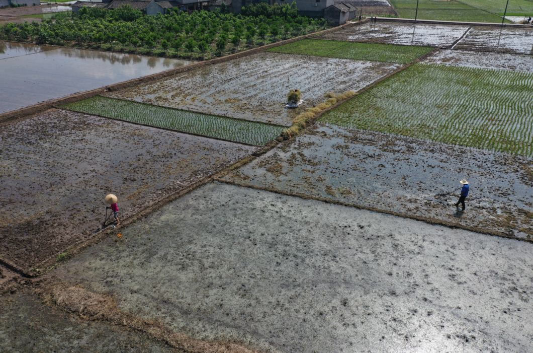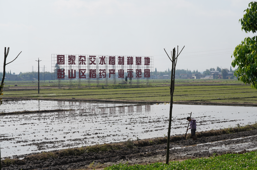 4月27日,眉山市彭山区谢家街道汉安村千亩杂交水稻种植基地里,农民正在田间插秧苗,一片繁忙的春耕景象。