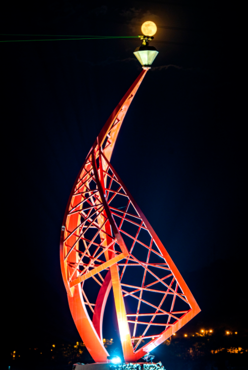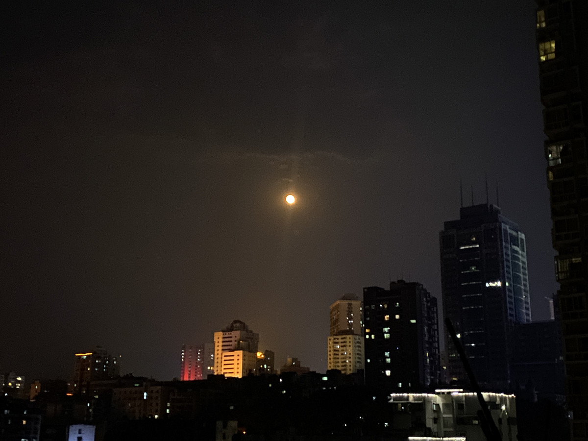 “超级月亮”与攀枝花市夜景相映成趣。唐子晴 摄