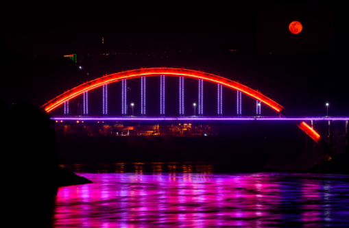 攀枝花“两江三桥”景观看到的“超级月亮”。刘家成 摄