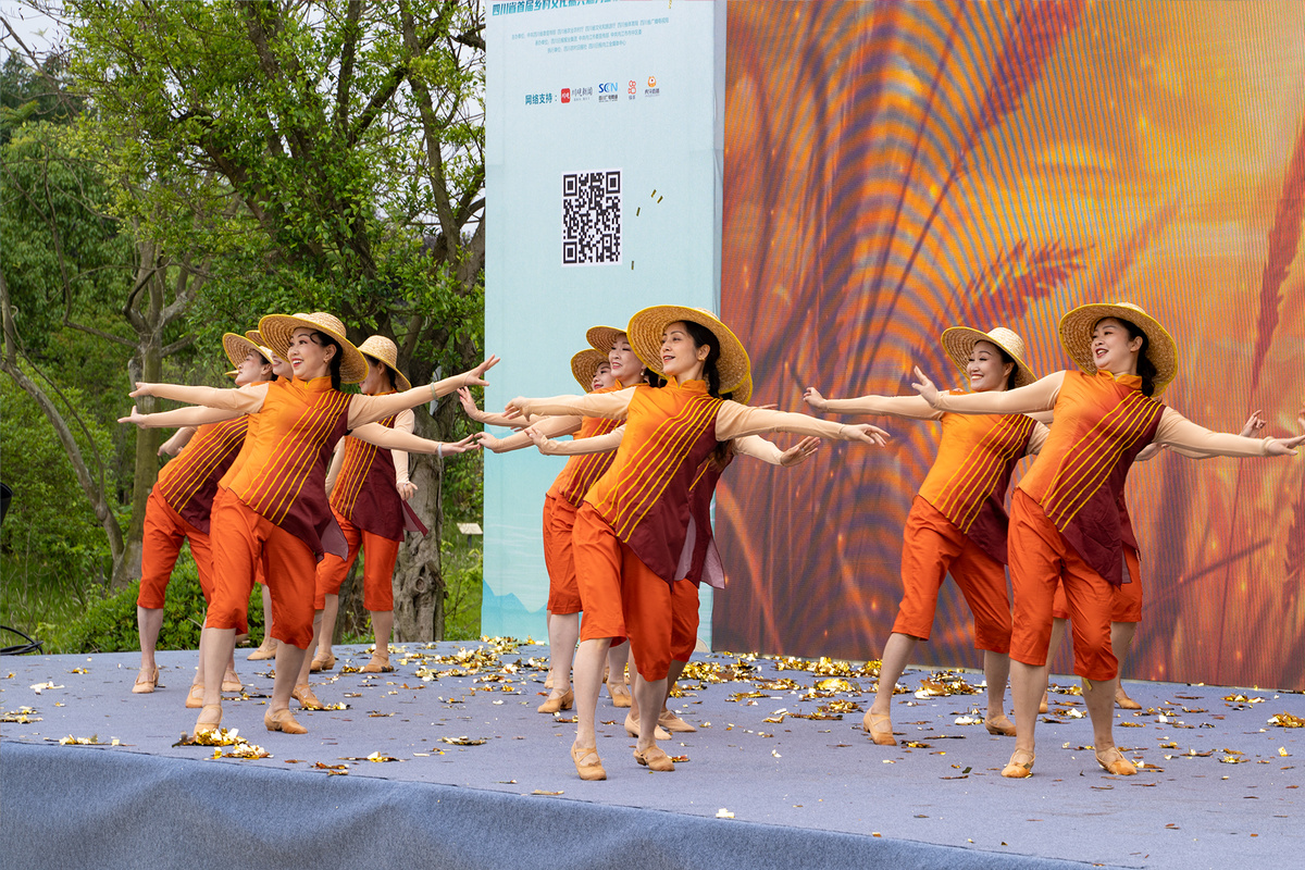 4月28日,四川省首届乡村文化振兴魅力乡镇竞演大赛启动仪式上,一支平均年龄超过50岁的女子表演队伍大展身姿。队伍来自内江市市中区百花艺术团,代表市中区永安镇参加竞演,队伍表演的《丰收乐 甜城味》舞蹈收获阵阵掌声。