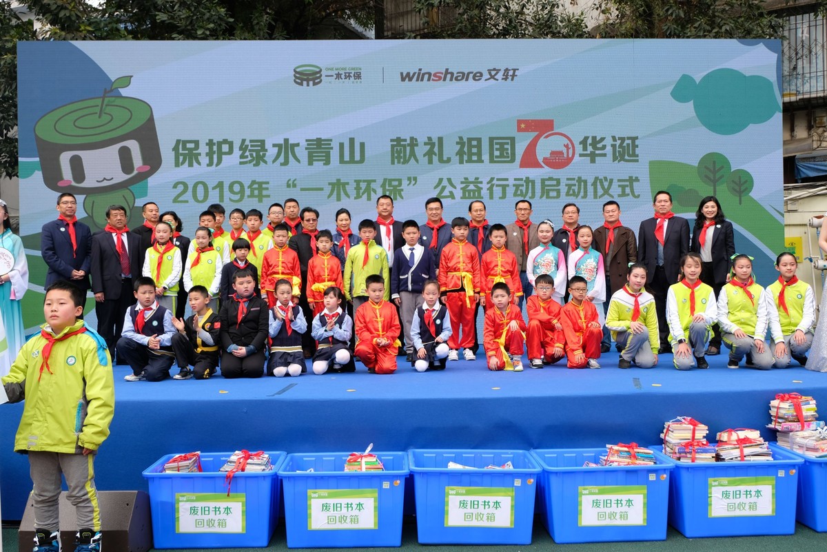 3月12日,植树节。在这个生机盎然的日子,由成都市青羊区委宣传部、成都市青羊区教育局主办,新华文轩出版传媒股份有限公司协办,成都市少城小学承办的2019年度“一木环保”公益行动启动仪式在成都市青羊区少城小学举行。孩子们唱着呼吁环保的歌曲,捐出自己的废旧图书,并发出环保倡议……在他们面前,“天更蓝、水更清、空气更清新”真的不只是一句口号,令现场成人和过往市民为之动容,并深受启发。