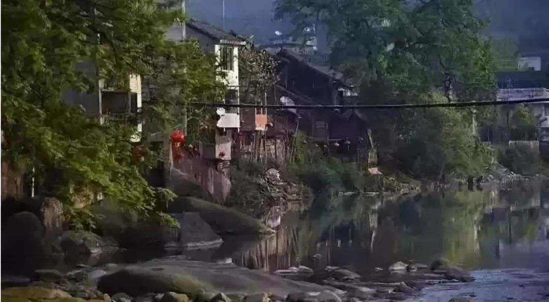 由于古街临河,一些楼房就在河畔的大石上打孔立柱建成,成了吊脚楼。古镇也背靠石山,有的房子还以大石为壁,别有一番景致。