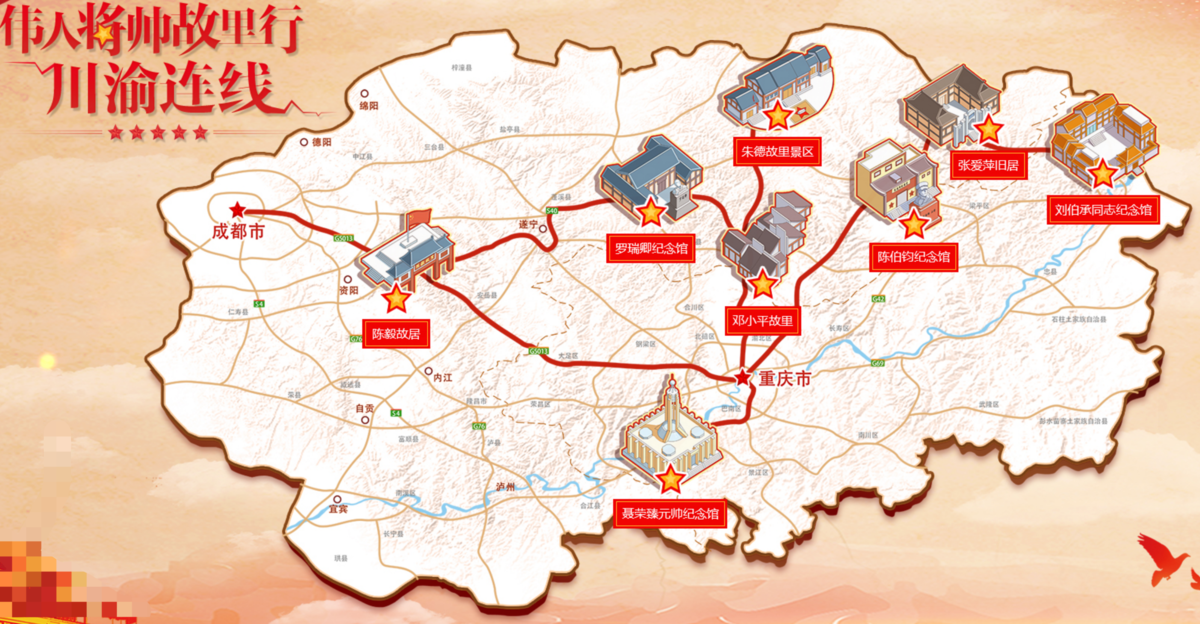 据了解,发布的“伟人将帅故里行·川渝联线”红色旅游地图,推出了“三日游”、“四日游”等多条旅游线路供游客选择。其中“三日游”,共推介了3条旅游路线,游客可以一天选择一个纪念馆走一走,看一看。“四日游”则在“三日游”的基础上,增加了“联线”里的故居景点。