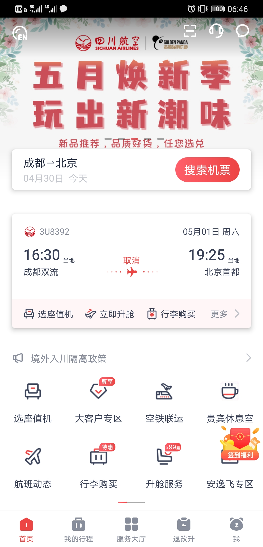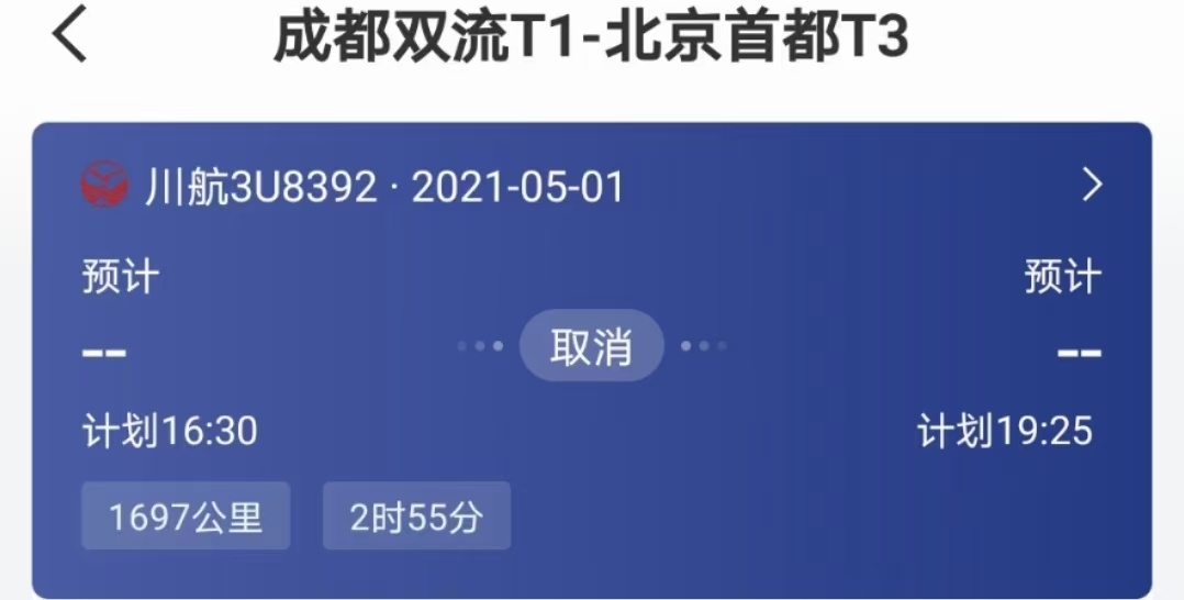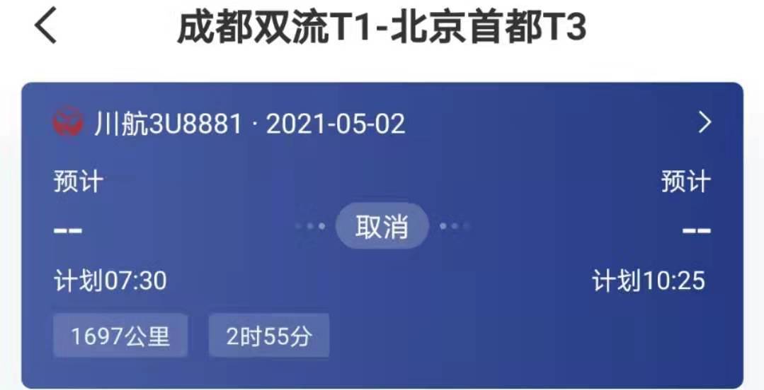 随即打开川航官方APP核实,也显示航班处于取消状态。