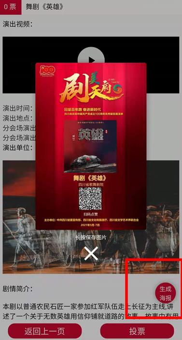分享一个“出圈”小秘诀,除了点击右上角的三个小圆点进行分享外,你可以点击右下角“生成海报”按钮保存图片,即可获得该剧在朋友的专属的投票定制海报!直通单部剧目的投票页面!