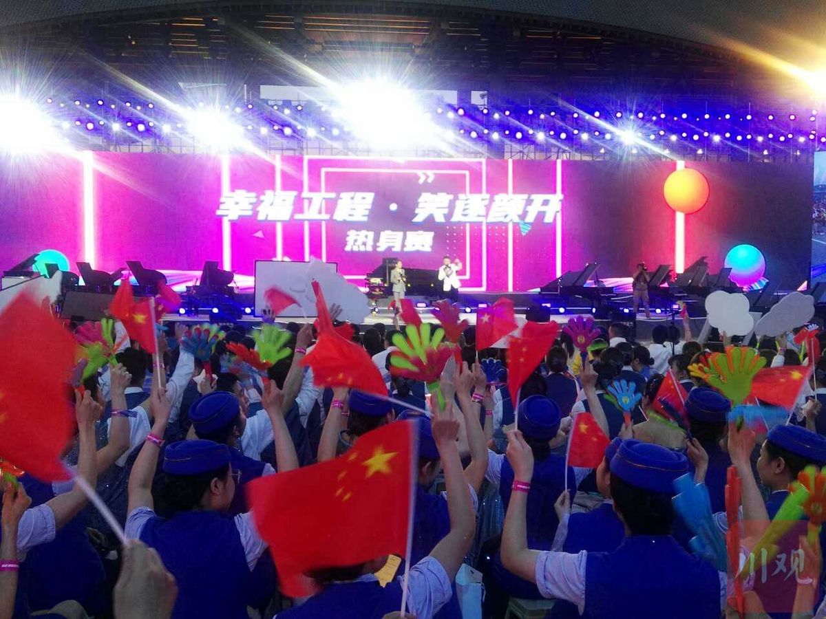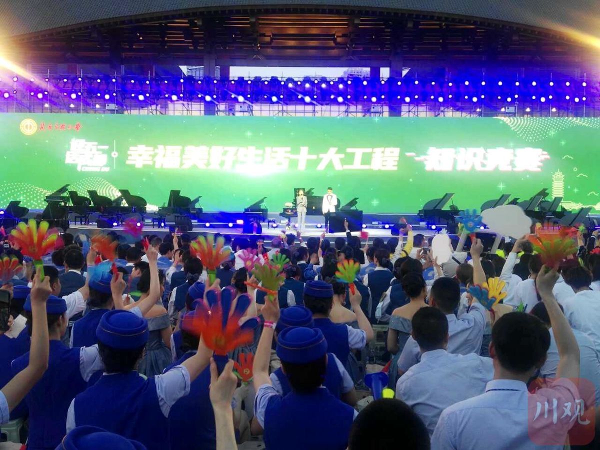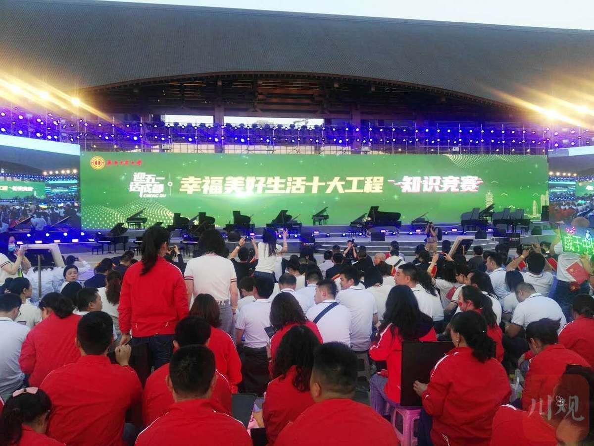 为切实提升广大职工群众对“幸福美好生活十大工程”的认知度和认同感,凝聚发展共识,为建党100周年献礼,4月29日晚,成都市总工会举行了一场别开生面的知识竞赛活动。活动创新地将拉歌与知识竞赛相结合,以“迎五一·话成都”为主题,以“幸福美好生活十大工程”和党史学习教育为竞赛内容,来自成都市各区县总工会、产业工会、劳模、工匠代表1000余人参加了此次知识竞赛。