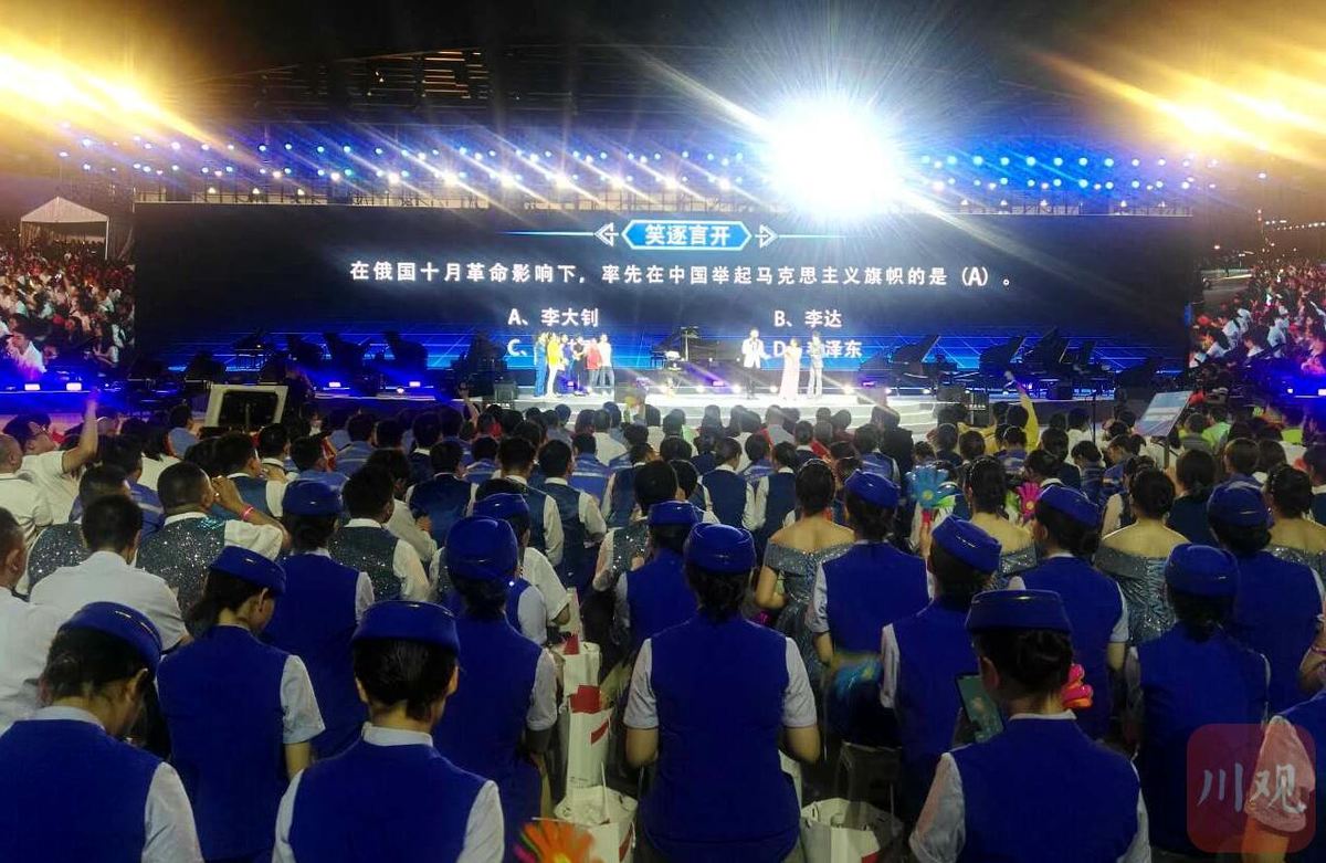 呐喊声、歌声、笑声、掌声……4月29日晚,天府国际会议中心迎宾广场成了歌声的海洋,天空中回响着的旋律时而悠扬,时而激荡人心,绵延不绝。当日20时,随着五月颂职工乐团一首激昂的弦乐演奏,此次知识竞赛正式开启。