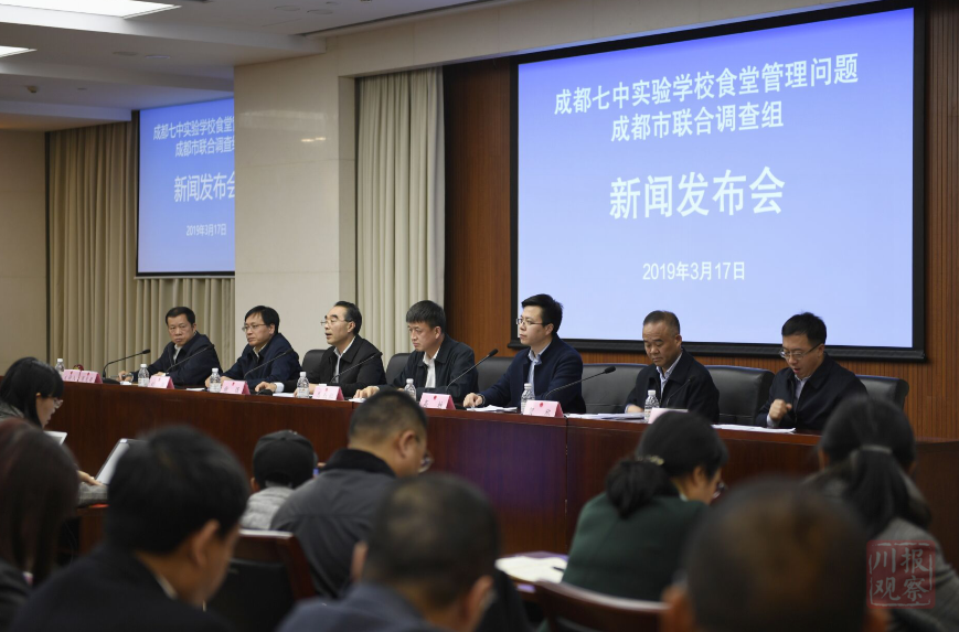 在3月17日上午举行的成都七中实验学校食堂管理问题成都市联合调查组新闻发布会上,中央和省市媒体就社会关注的焦点问题进行了提问。
