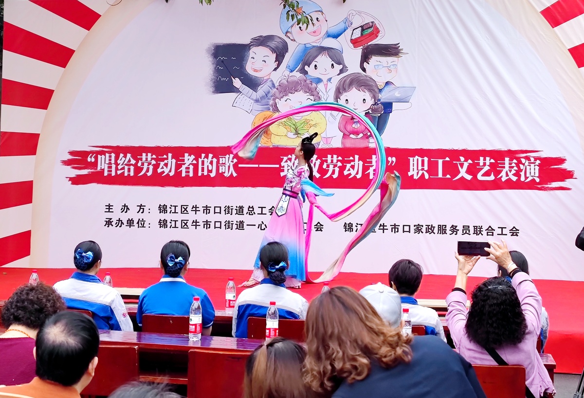 4月28日,街道总工会以大力弘扬劳模精神、劳动精神为目标,歌颂劳动者为城市建设作出的贡献,联合辖区家政服务员联合工会开展“唱给劳动者的歌——致敬劳动者”职工文艺表演活动,充分展示辖区职工蓬勃向上的精神风貌和时代风采,增强职工们的凝聚力、向心力。