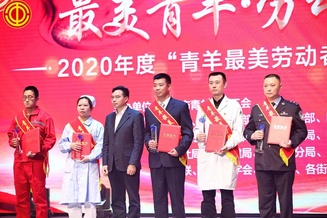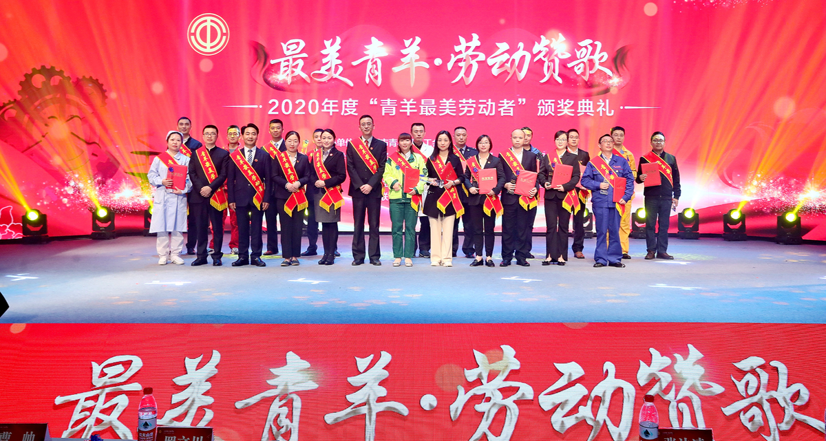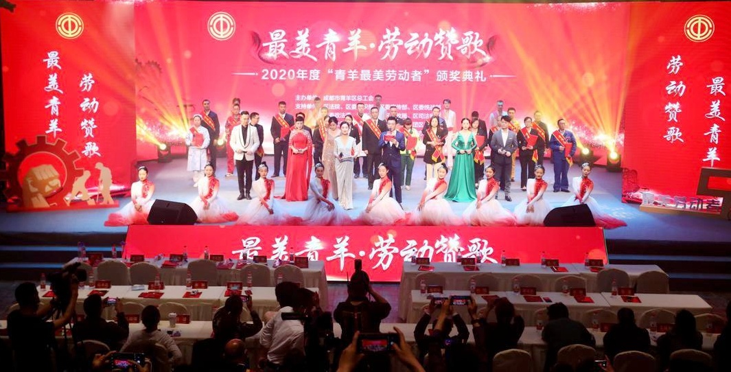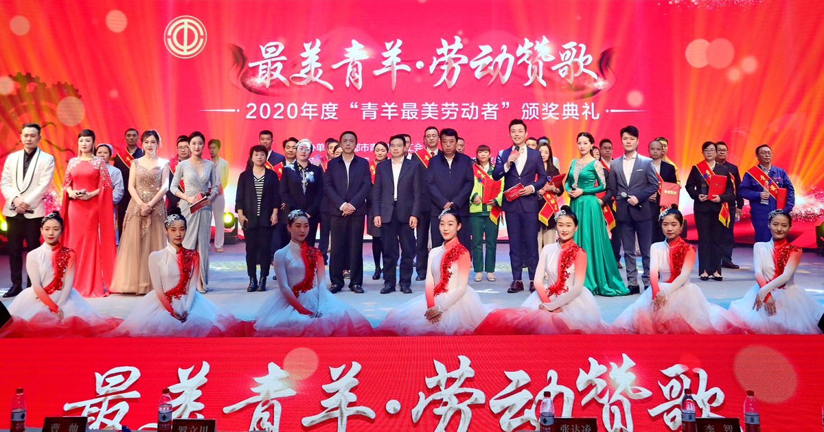 在五一国际劳动节来临之际,成都市青羊区总工会主办的“最美青羊·劳动赞歌”—2020年度“青羊最美劳动者”颁奖典礼日前在少城视井演播厅隆重举行,青羊区委常委、区总工会主席刘继平等领导为22名“青羊最美劳动者”颁发了荣誉证书和奖杯,来自全区的劳动模范代表、往届最美劳动者代表和各行各业职工代表300余人欢聚一堂,向“青羊最美劳动者”送祝福,喜迎五一国际劳动节。