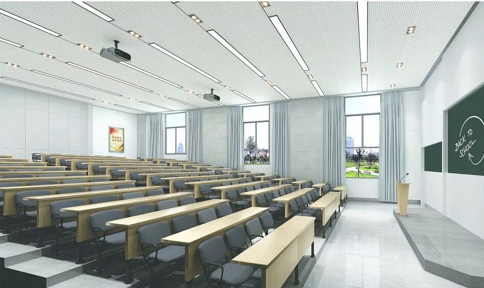 整个改扩建工程分为综合教学楼、教职工办公楼、学术报告厅、艺体楼、室外运动区5个功能模块。其中,综合楼包含多个仪器室、实验室、录播教室、阶梯教室、计算机教室等;艺体楼包含多个舞蹈教室、乐器室、琴房、美术教室等。