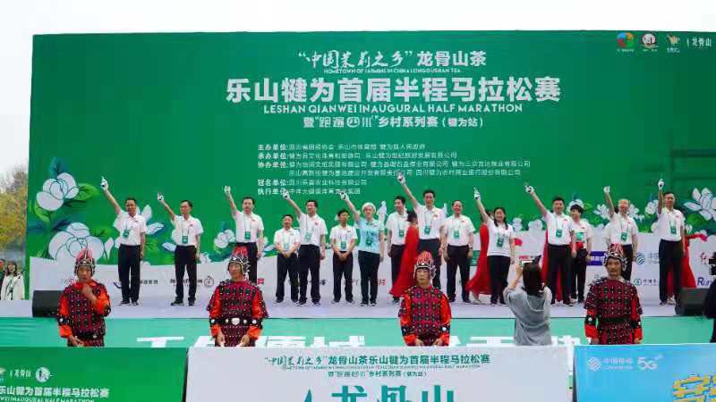 犍为西汉置郡,隋朝建县,2156年的历史积淀,孕育了“百年火车、千年庙镇、万年湖泊、亿年桫椤”等独特的人文自然资源,素有“金犍为”的美誉。奔跑者在穿越千年历史的赛道上,在芬芳美景的陪伴中,穿古越今,感受古韵的厚重与现代的活力。此次“中国茉莉之乡”龙骨山茶乐山犍为首届半程马拉松赛暨“跑遍四川”乡村系列赛(犍为站)是犍为县首次举办大型马拉松赛事。