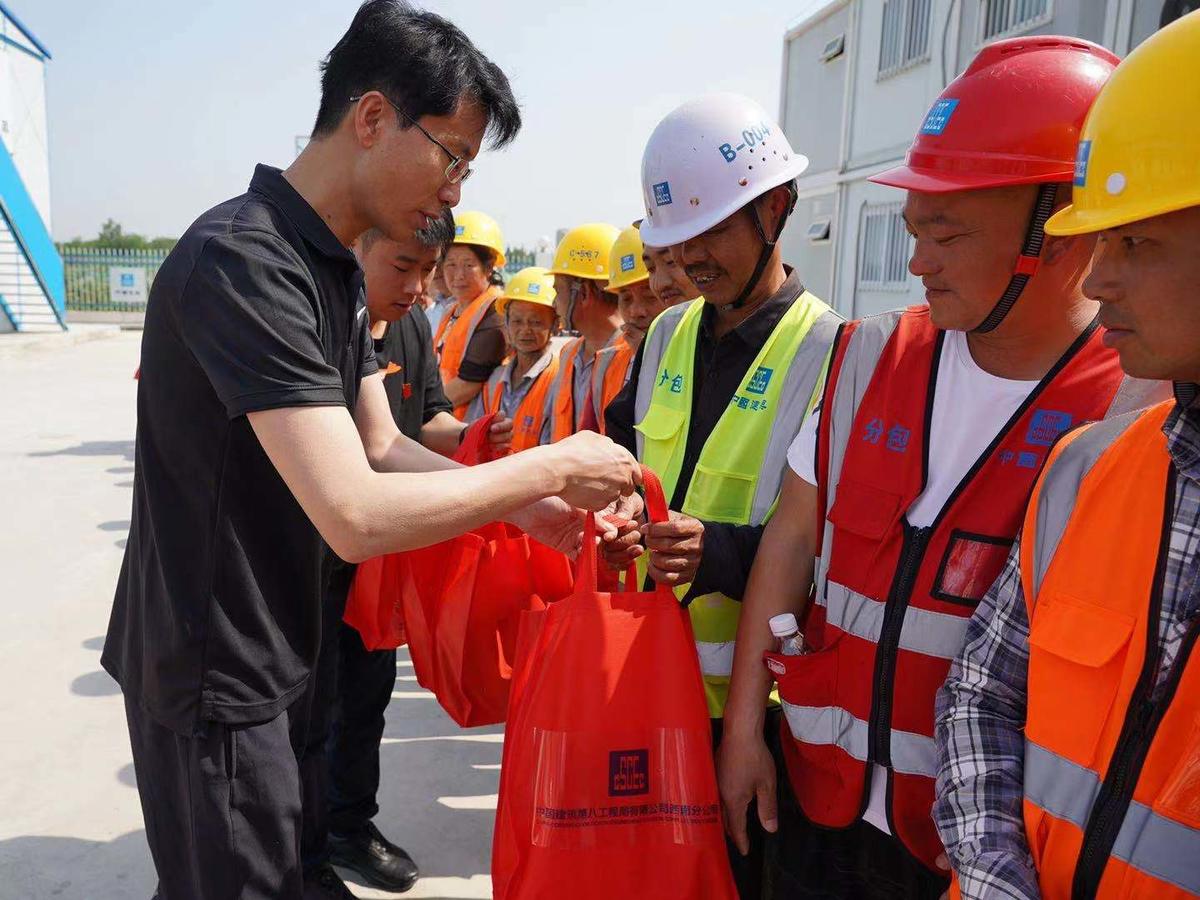 活动最后,该分公司工会为该项目全体参建人员送上劳动节慰问礼包,其中包括了藿香正气液、纸巾等防暑降温用品和日常用品。