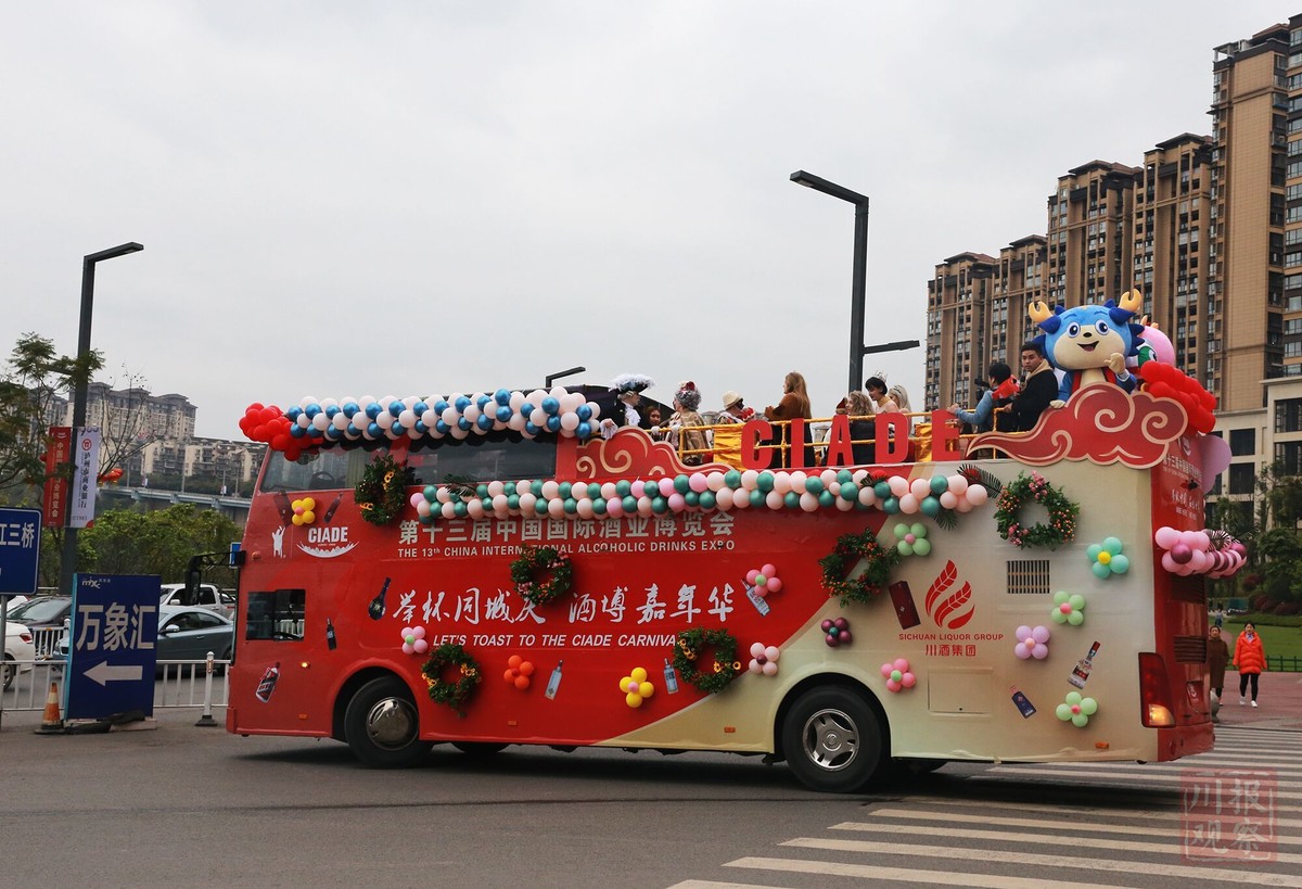 花车的引擎还没启动,不少人就在车前合影留念。这辆载着“意大利元素和酒博会元素”的双层大巴,从23日下午从佳乐金街出发,经过酒城乐园、泸州市政府、水井沟、白塔广场、沱江一桥、回龙湾、龙马大道,而步步高新天地就是它的终点。