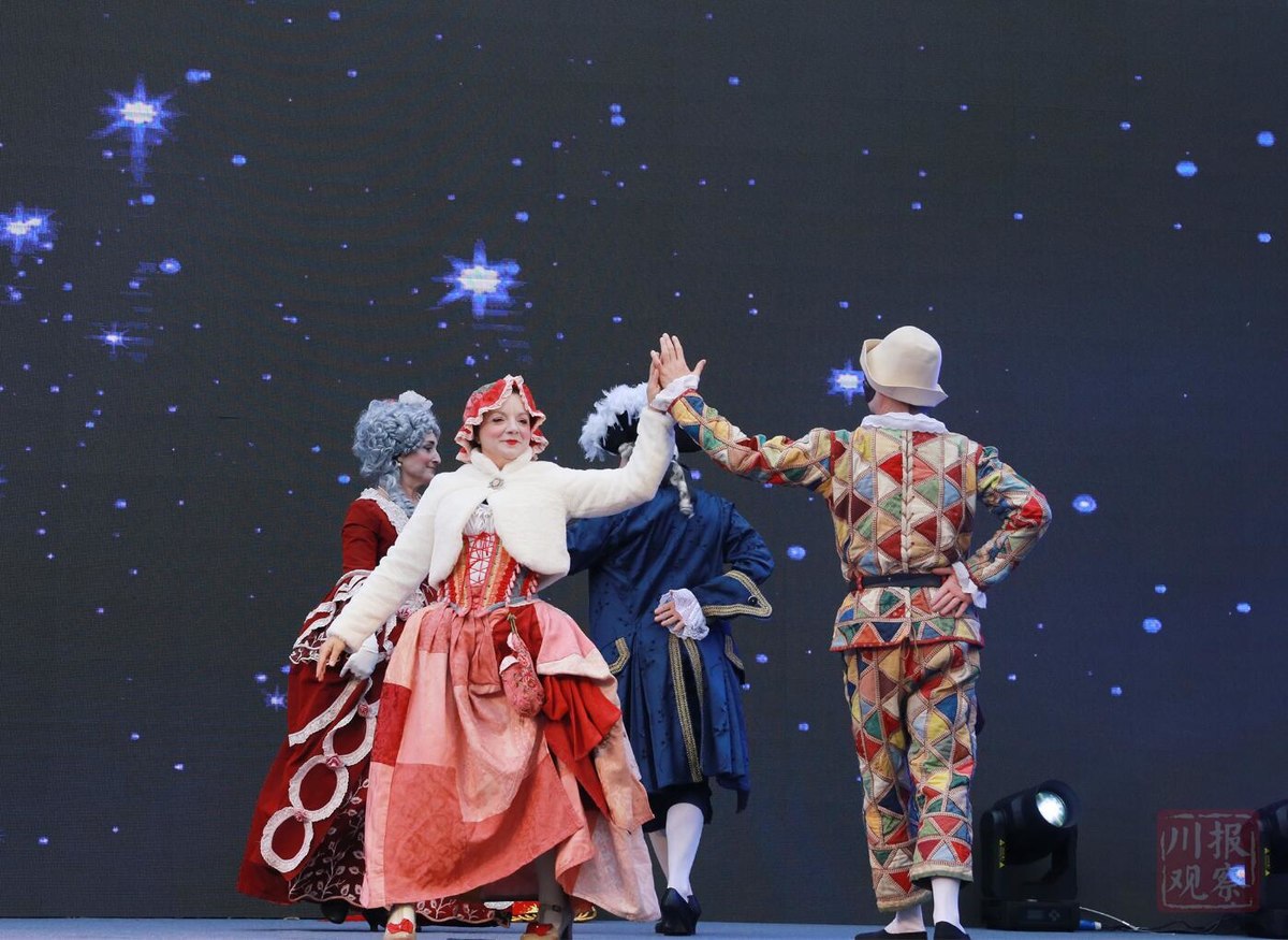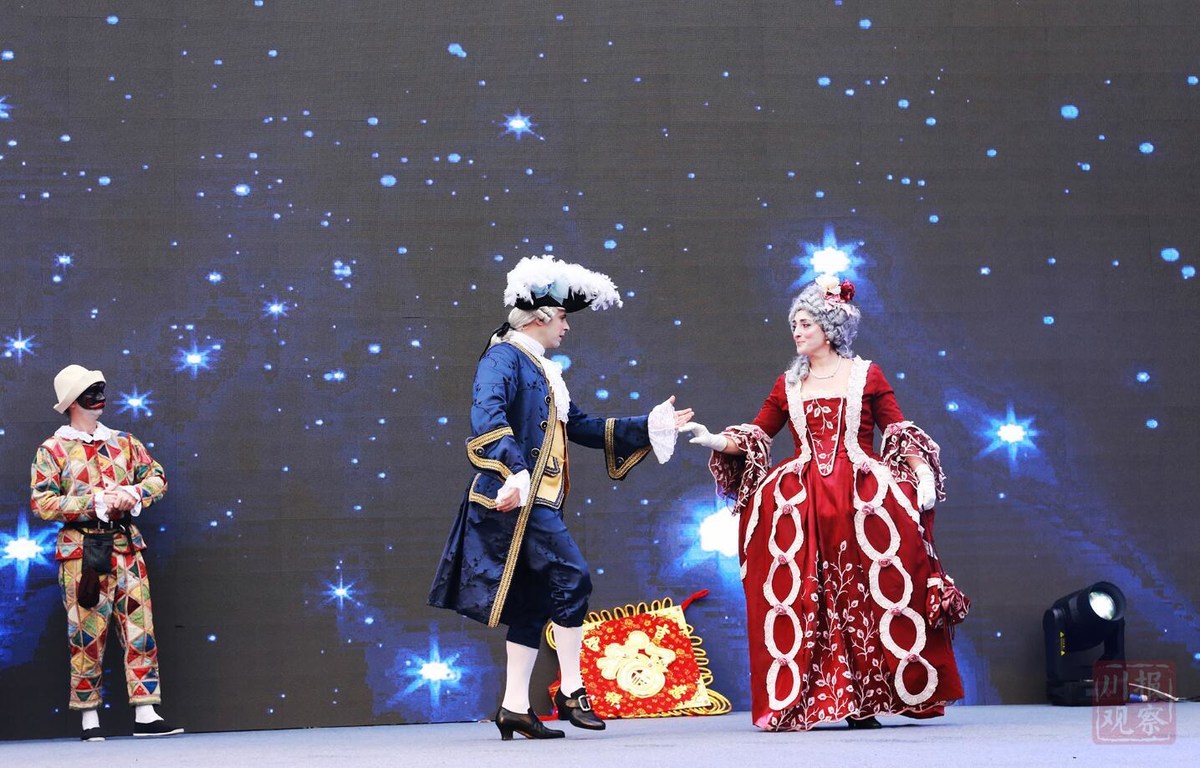 不仅是花车巡游,还有街头表演。23日下午14时,酒博嘉年华花车巡游启动仪式时,《小提琴演奏》《我和我的祖国》《意大利风情表演》模特走秀等赢得在场市民掌声。