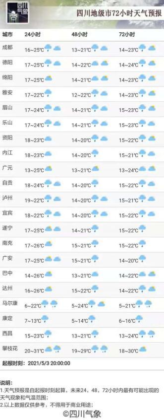 假期宝贵,长话短说。最后奉上未来三天四川省内主要城市的天气预报,祝大家玩得愉快~