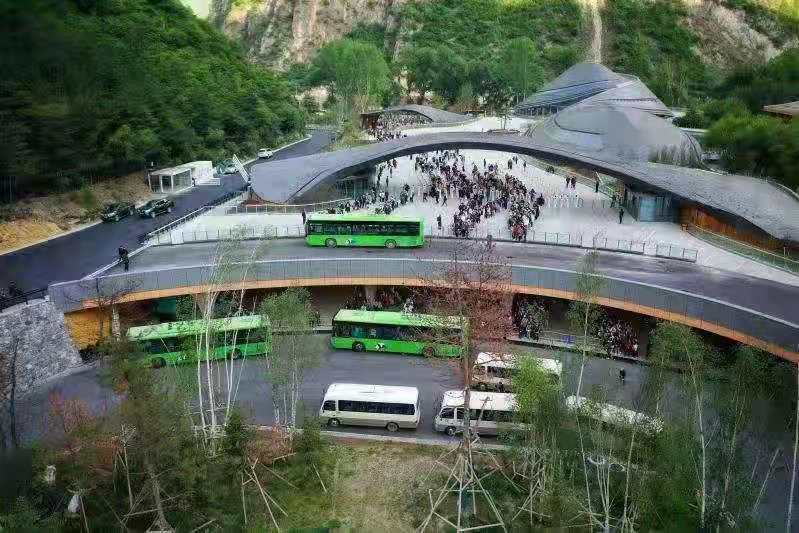 在景区入口,人脸识别+热成像测温一体机系统发挥了重要作用。游客按照排队通道间距标识排队,进行人脸识别,体温检测合格后方可自助刷证入园。此外,固定悬挂式摄像头、移动警用头盔体温测试仪,以及全面启用的沟口立体式游客集散中心等也大大提升了入园效率。