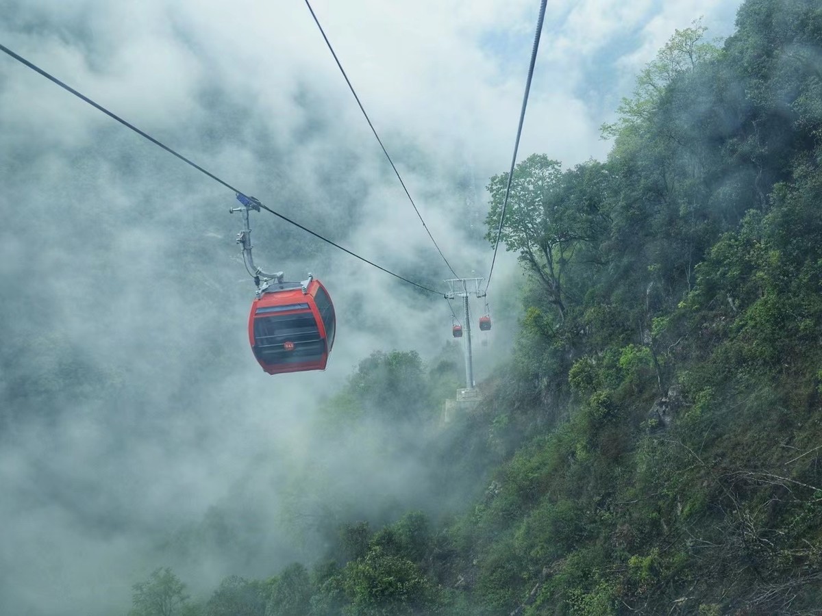 从游客中心到大坪观景平台的“索道”也成为另一个大受称赞的体验项目。索道全程3500米、落差1200米,在10分钟的乘坐过程中,有云雾时穿梭山间,犹如游走仙境;天晴时则可坐望雪山,感受浪漫与诗意。