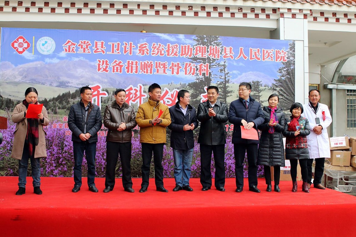 从2017年开展对口帮扶理塘开始,华西金堂医院高度重视援建工作,派出党政班子数人到理塘县实地调研、深度沟通、了解需求。医院以问题为导向,瞄准理塘地区老百姓看病就医的实际困难,以骨科建设为突破口,采取“人才共建、设备捐赠、技术帮扶和学科建设”等措施进行帮扶,先后捐助医疗设备及药品价值约15万元人民币,开展业务学习及学术讲座28场、培训人员120余人次,开展操作培训23次,培训人员110余人次。