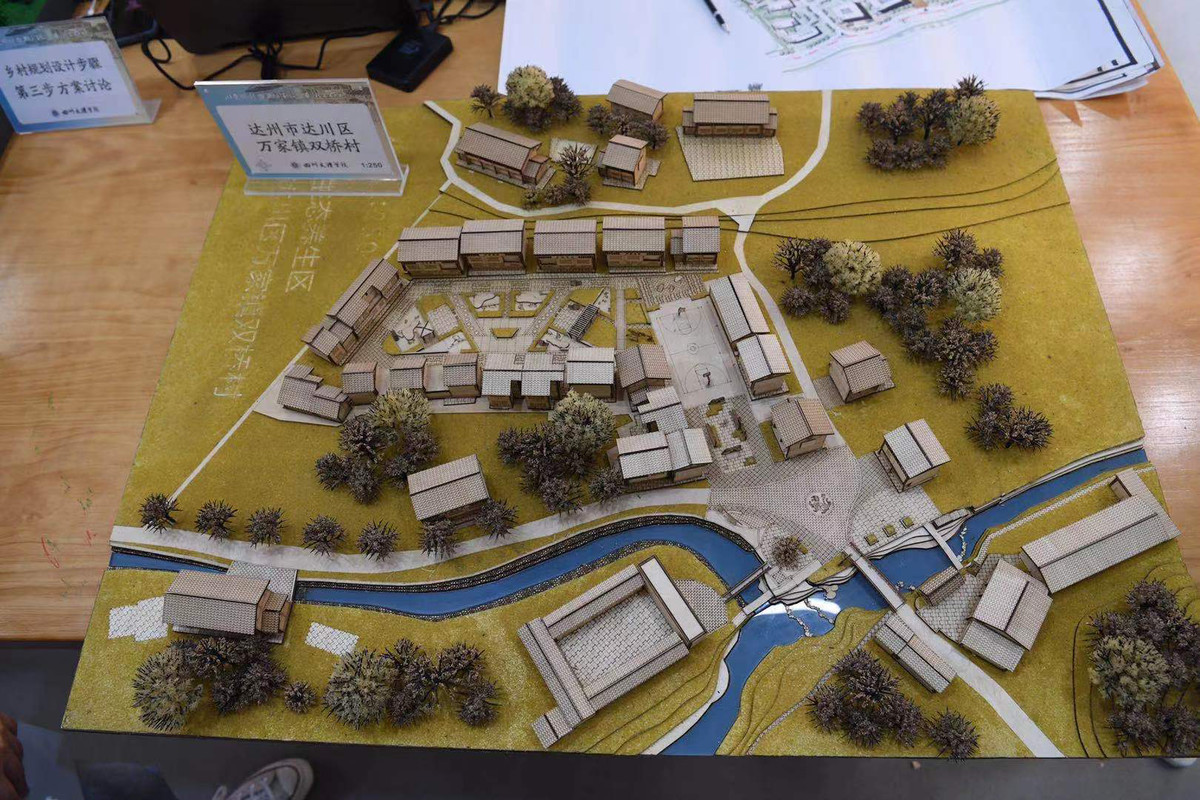 在四川文理学院的川东乡村振兴规划设计艺术工作坊内,一个展示了达州市达州区万家镇双桥村乡村风貌的模型引人注目。走近一看,小小的模型上设计有客栈、酒楼等建筑物,还有农村推车、牧牛等农耕文化元素,一个与当地特色结合的乡村振兴项目跃然纸上。