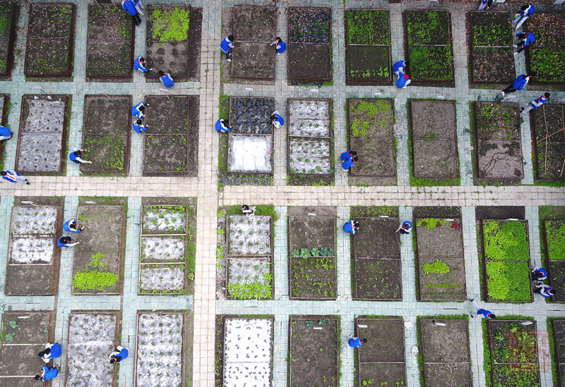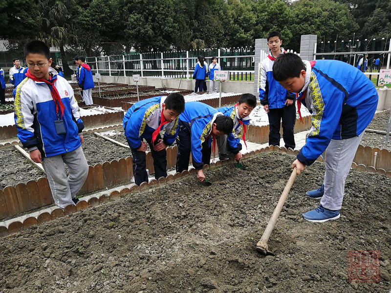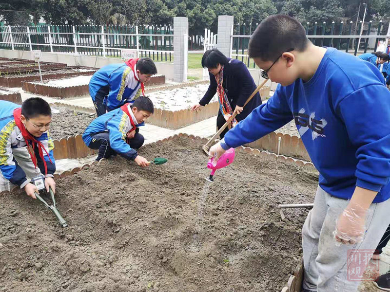 播种、填土、除草、浇水……这一系列平时在田间见到的耕作情景,现在搬到了中学校园里,种地的“主角”也变成了中学生。