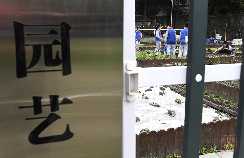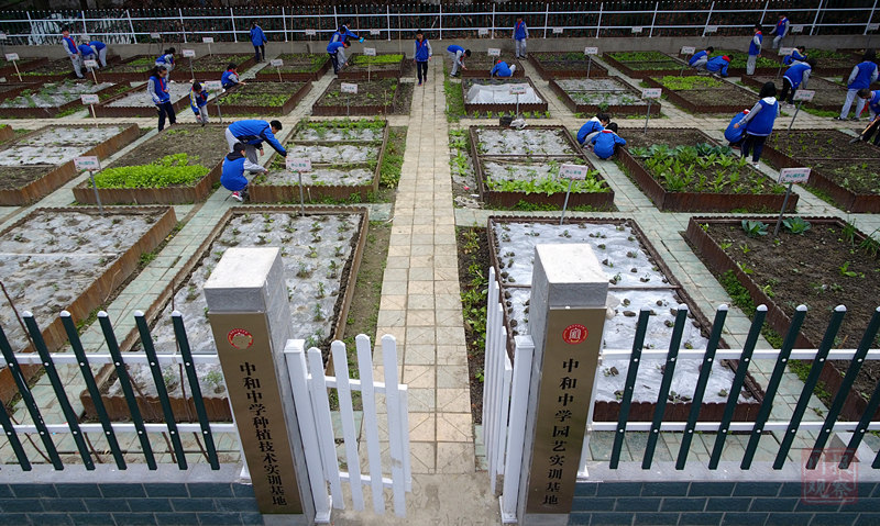 从今年初,成都中和中学将一片荒地变成园艺实训基地,把荒地分为48块“开心农场”,分别由48个班负责,将室内的劳技课搬到室外,学生在老师的指导下种植茄子、西红柿、白菜、辣椒等蔬菜。
