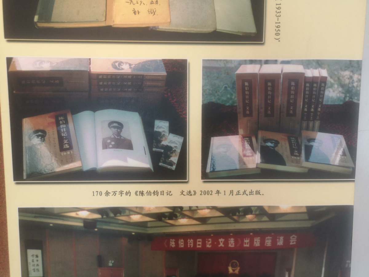 走进陈伯钧纪念室,展厅内厅中央的玻璃橱柜,收录了关于陈伯钧的相关报刊、杂志、专著,其中《陈伯钧日记·选集》共上、中、下三卷,三本厚重的书籍格外吸引游客的注意。
