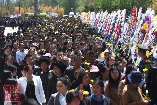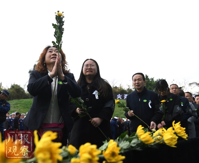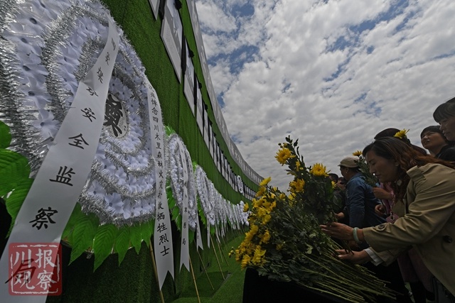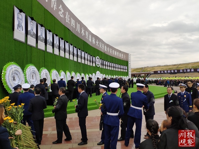 在思念曲中,社会各界干部群众向四川木里森林火灾扑救中英勇牺牲的烈士敬献鲜花。