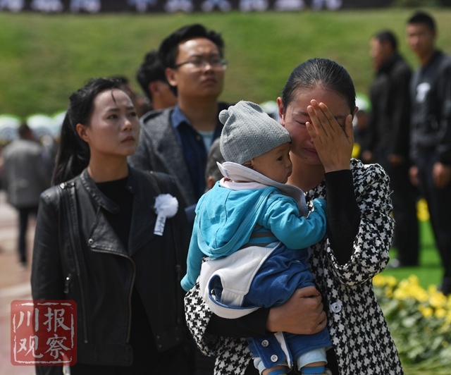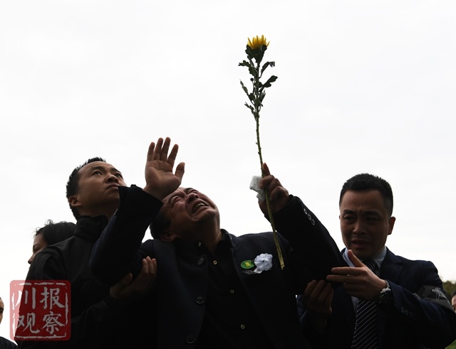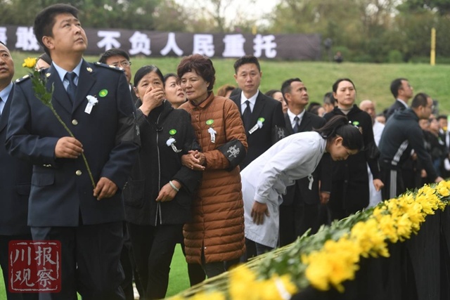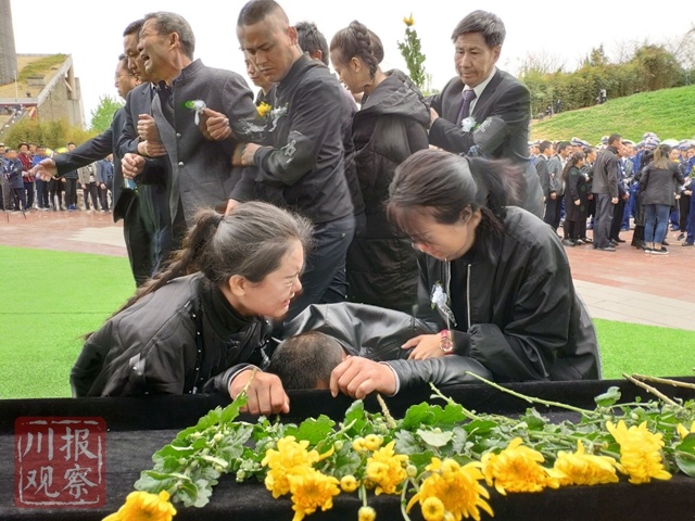 30位英雄的家属前来悼念,送别亲人,悲痛难抑。
