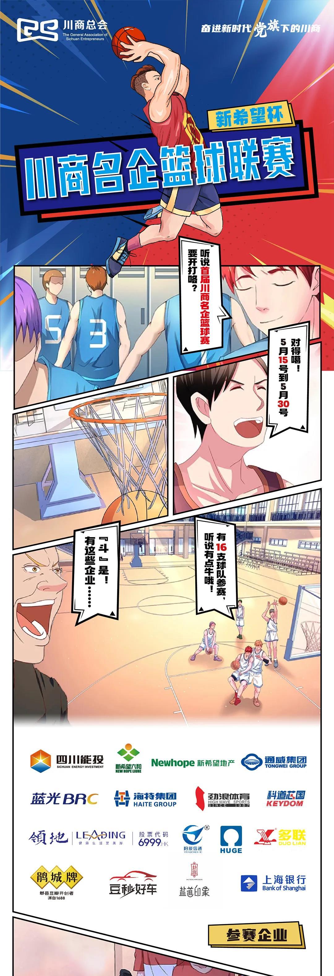 5月15日,“党旗下的川商”继续启动庆党生日系列活动——“首届川商名企篮球联赛”,将在成都举行开幕式及川商名企篮球队表演赛。届时,来自川商总会会员单位组成的16支川商名企篮球队将以拼搏奋进的姿态为企业赢得荣誉、为党献礼。