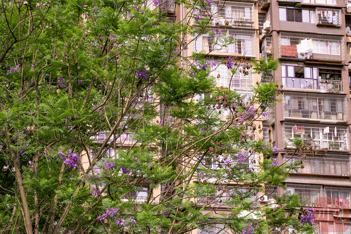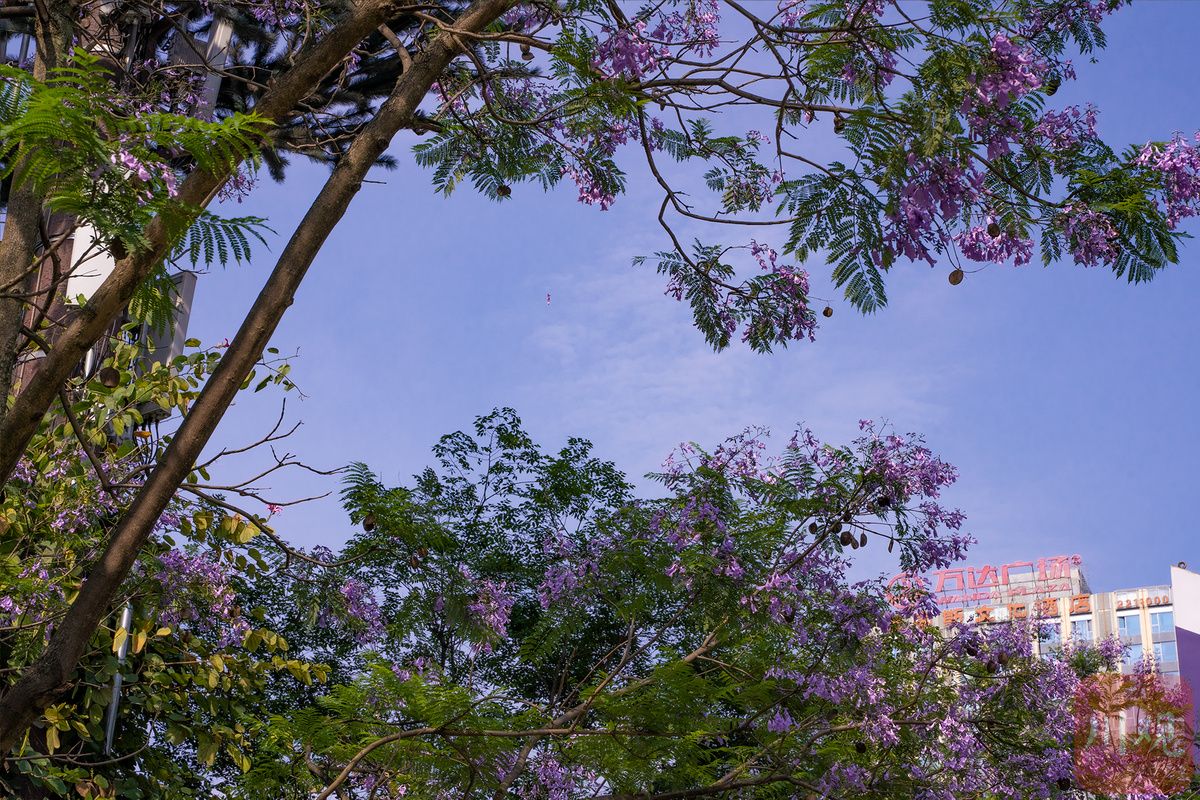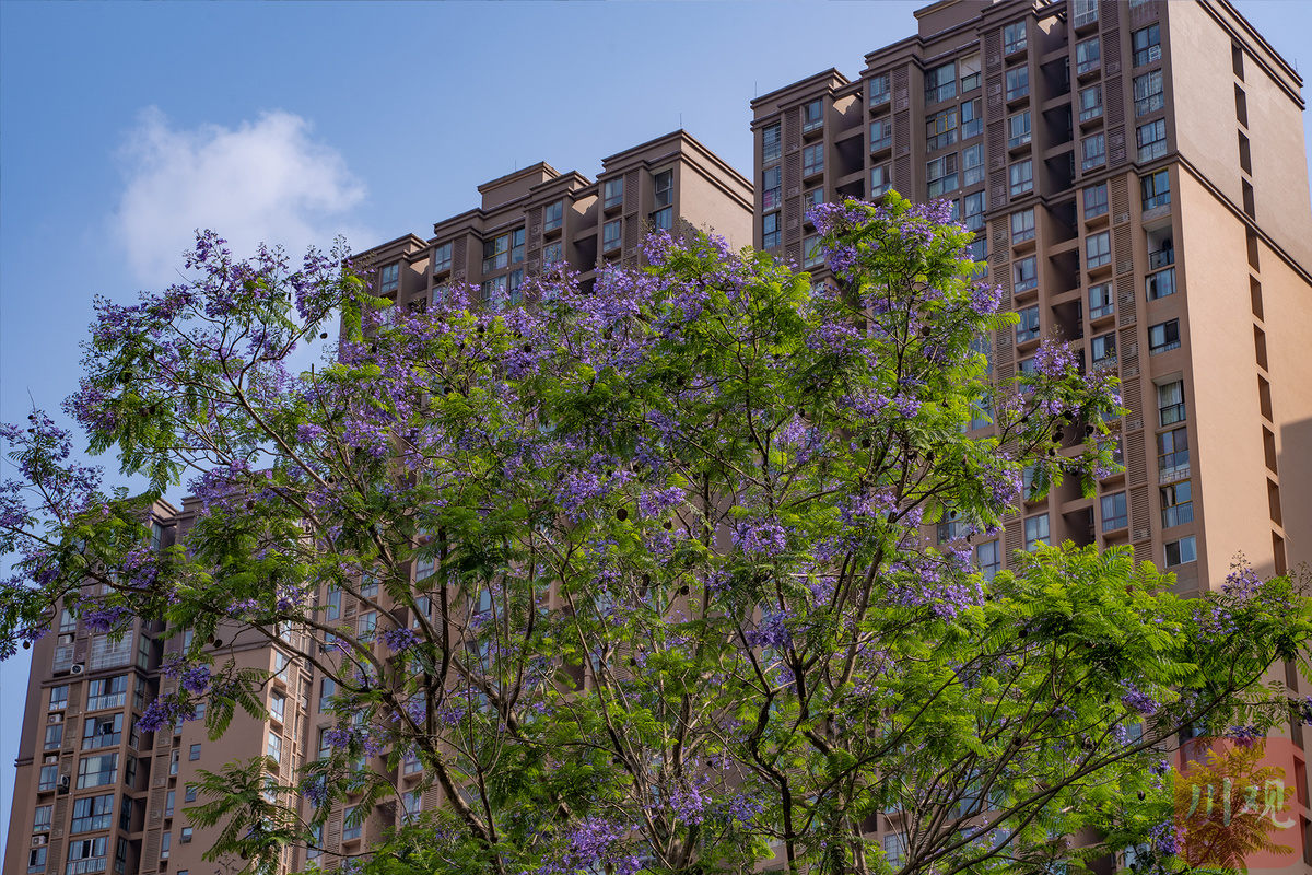 据了解,蓝花楹每年4月底至5月中旬开花,因为盛花期满树的蓝紫色花朵,又有蓝雾树、紫云木之称,美中不足的是,其花期只有10到15天,请市民朋友抓紧这转瞬即逝的时间,到内江的街头巷尾去走一走,去蓝花楹树下打卡拍照,与这座城市共赴一场浪漫的约会。