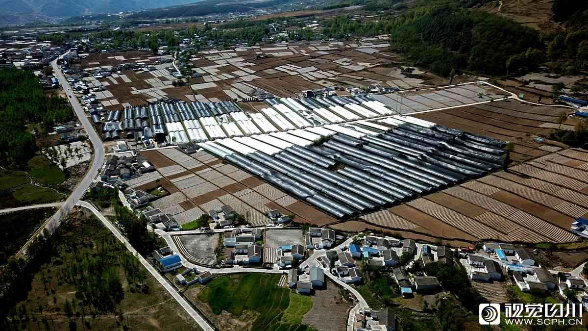艳阳下,五道箐乡的大棚基地和新居层次分明。