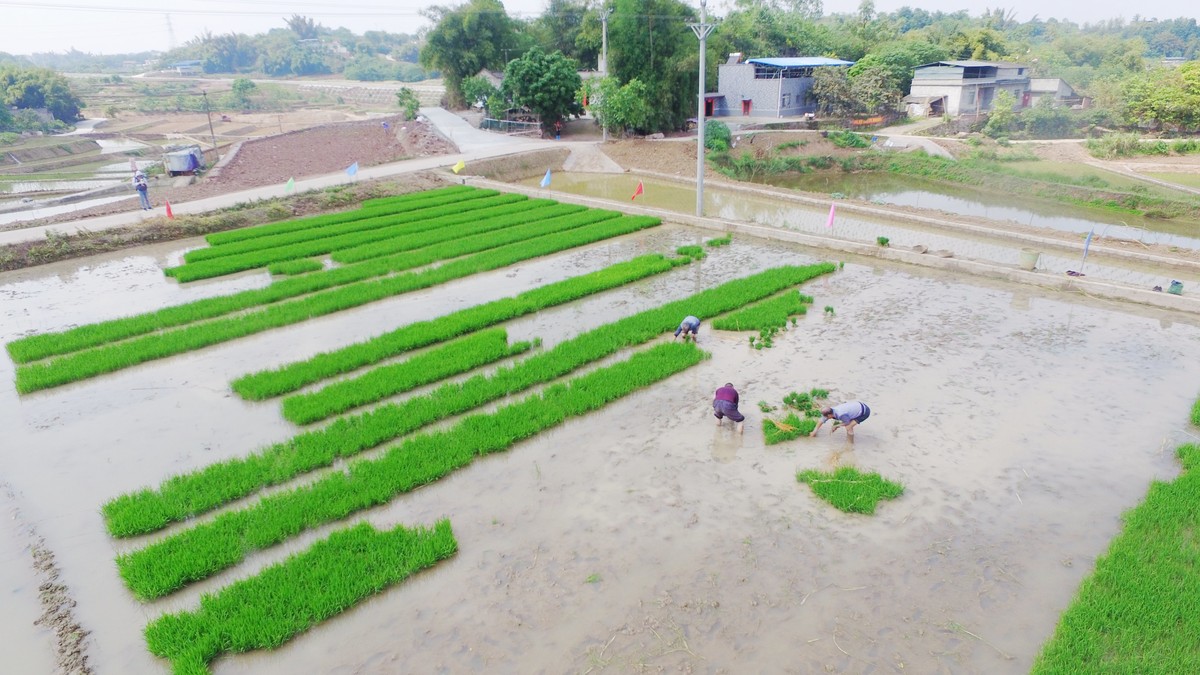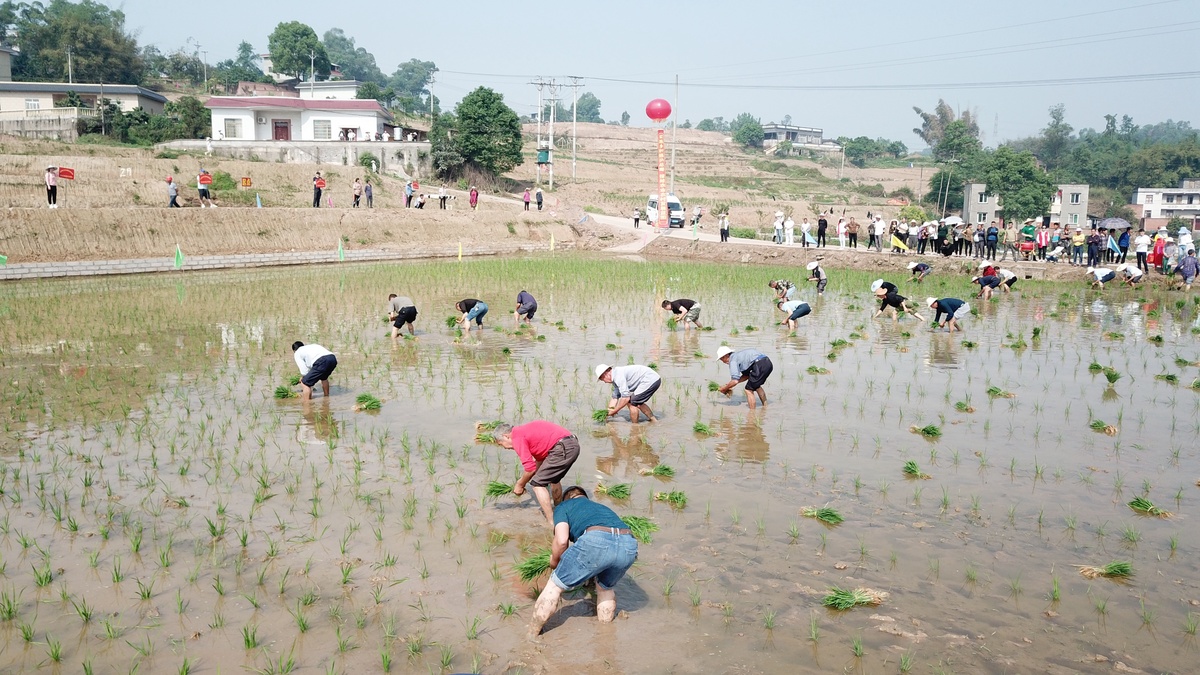 4月30日,在泸州市龙马潭区胡市镇黄桷村,当地正在举行水稻“开秧门”仪式,来自该镇7个村(社区)的十多位插秧高手在进行手工插秧技艺比拼。杨尚威摄