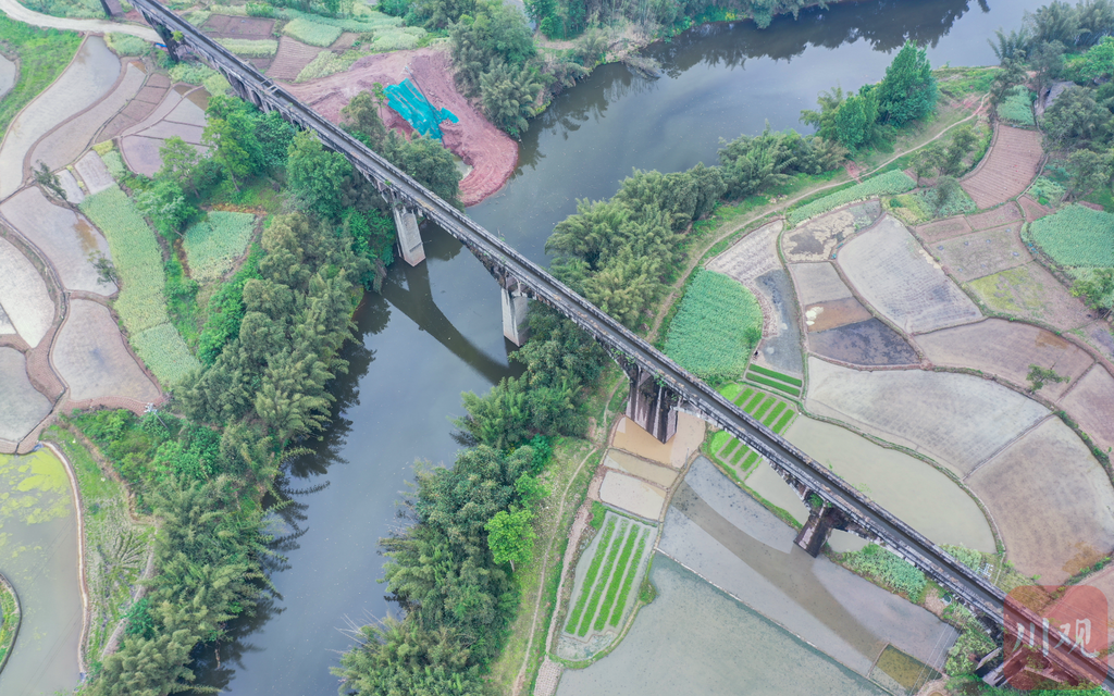 近日,内江隆昌市胡家镇解放村,从沱江引入灌溉水顺着渡槽流向稻田中。 何海洋 摄